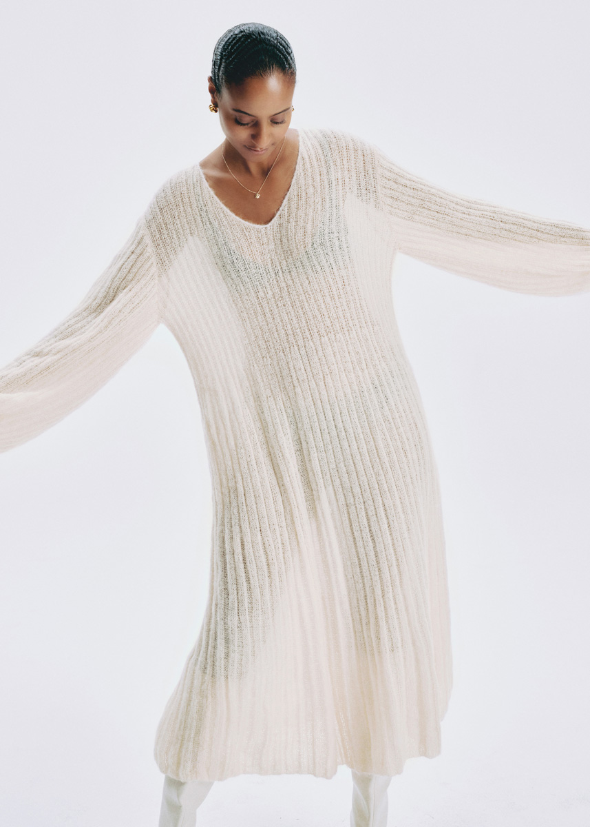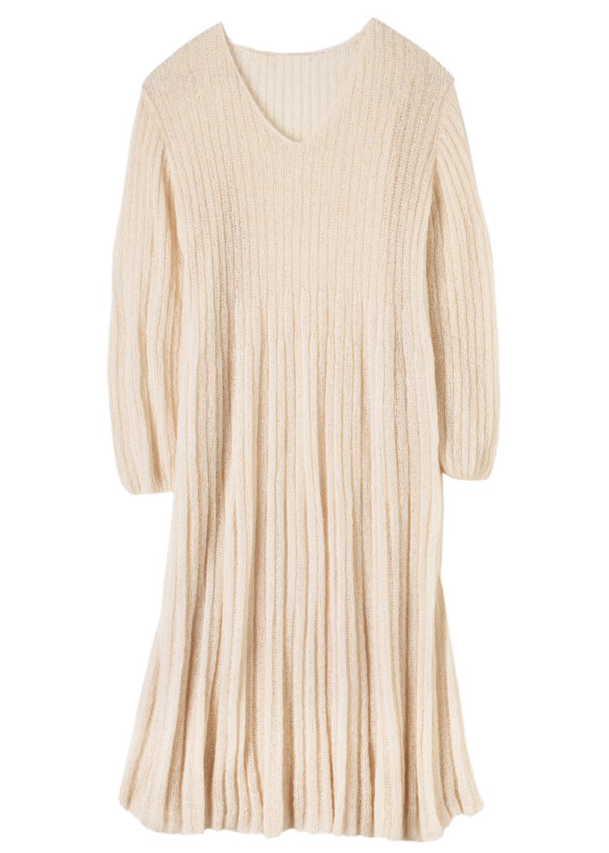 350 (400–450) г кремовой (цв. 2) пряжи Setasuri (69% альпака сури, 31% шелка, 212 м/25 г) фирмы Lana Grossa; круговые спицы № 3 и № 3,5 длиной 80 см, крючок № 3.