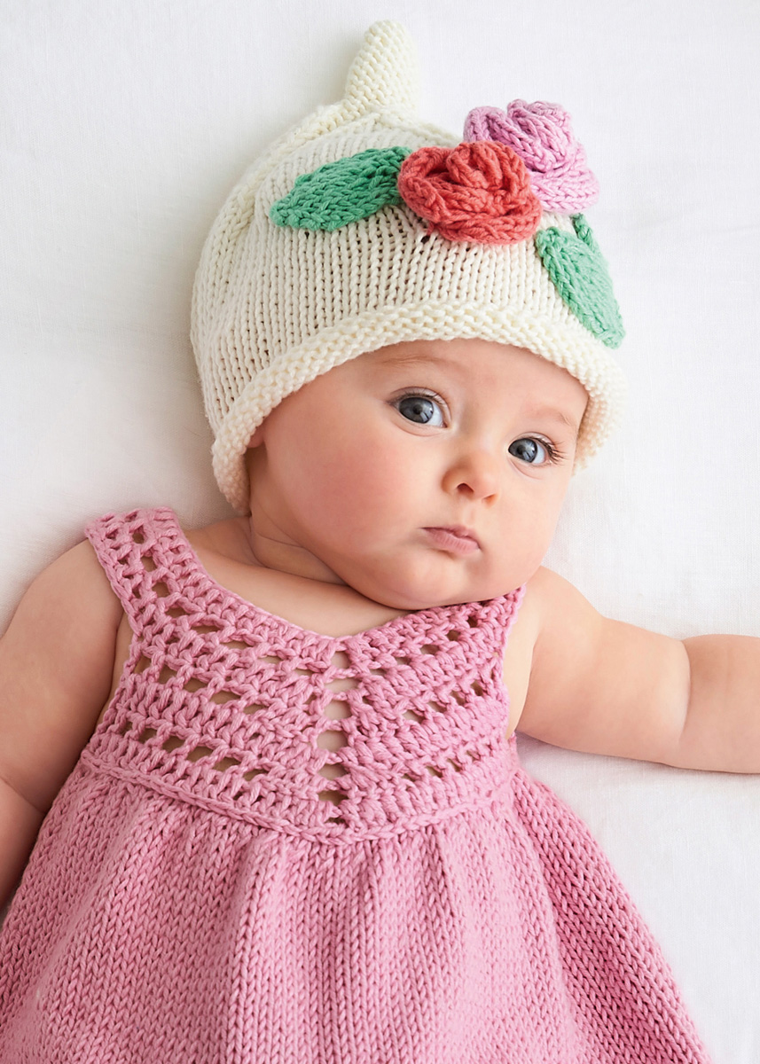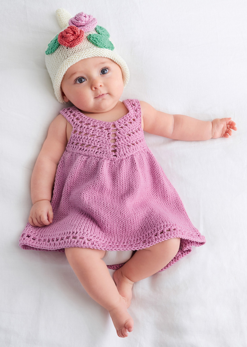 150 (200/200/250) г сиреневой (цв. 22) пряжи Soft Cotton (70% хлопка, 30% микрофазерного волокна, 140 м/50 г) фирмы Lana Grossa; прямые спицы № 4,5, крючок № 4,5