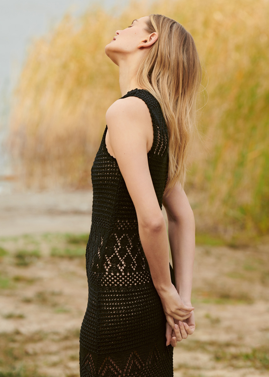 Lana Grossa-Qualität „Solo Lino” (80 % перераб. лён (вискоза), 20 % лён, длина нити = ок. 120 m/50 g): ок. 600 г чёрный (цв. 14); сп. № 4, 1 крючок № 3