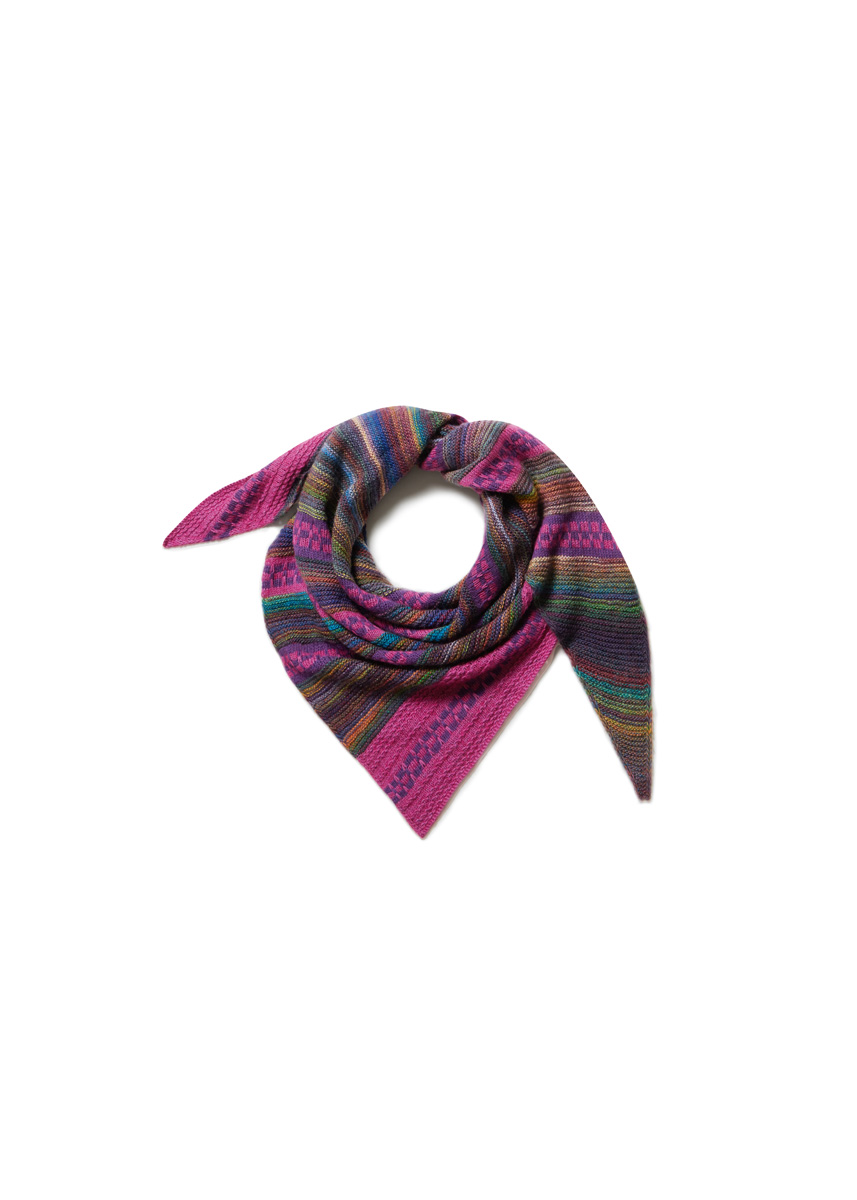 Lana Grossa Colorissimo (100% шерсть (меринос), длина нити 300 m/100 g), 200 г EAN: 4033493364546 (цв. 211) и Lana Grossa Ecopuno (72% хлопок, 17% шерсть (меринос), 11% альпака (беби), длина нити 215 m/50 g), 100 г орхидея (цв. 209) и 50 г фиолетовый (цв. 206); 1 кр. сп. № 4, 80–100 см.