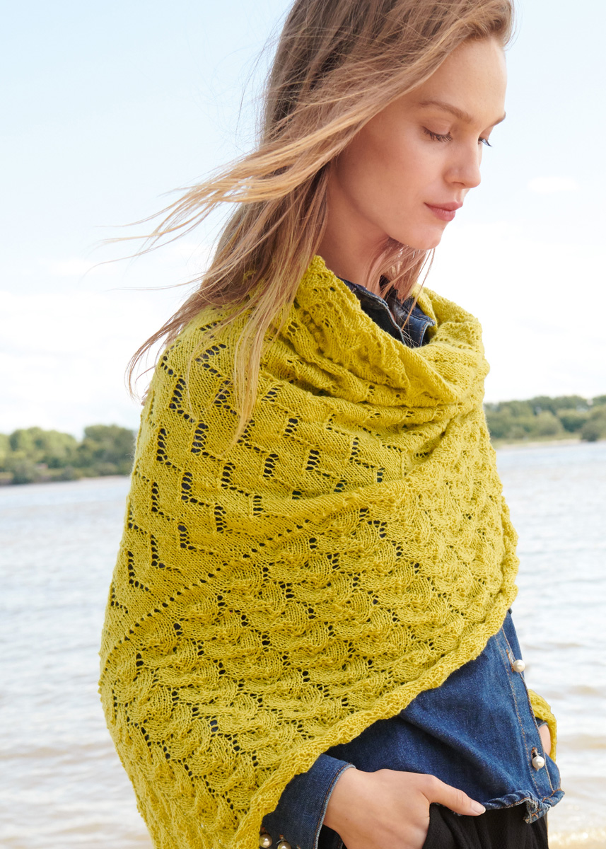 Lana Grossa „Cool Wool Lace“ (100% шерсть (меринос); длина нити 400 m/50 g), 400 г горчичный (цв 8) или серо- бежевый (цв 13); сп. № 3, кр. сп. № 3, длиной 80 и100 см.
