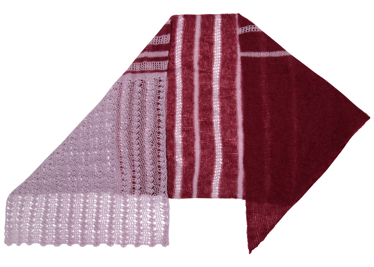 Lana Grossa Cool Wool Lace (100% меринос, длина нити 400 m/50 g), 100 г сирень (цв 15) и Silkhair (70% мохер, 30% шёлк, длина нити 210 m/25 g), 50 г бордо (цв 113); сп. № 5 и 1 крючок № 3,5