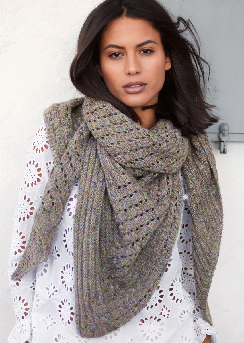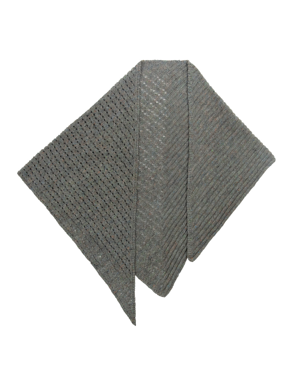 Lana Grossa Ecopuno Tweed (61% хлопок, 15% полиэстер, 14% альпака, 10% шерсть (меринос), длина нити 160 m/50 g), 350 г зеленый серый меланжевый (цв 303); 1 кр. сп. № 4, длиной 80 см.