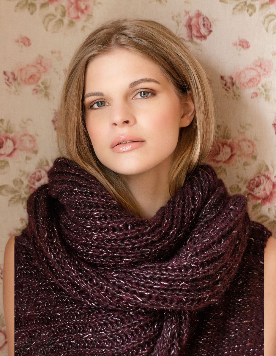 150 (200) 250 г черно-красной/серебристой (цв. 6) пряжи Cometa (34% шерсти (ягненка) альпака, 33% полиамида, 22% вискозы, 6% (мериносовой) шерсти, 5% полиэстера, 130 м/50 г) фирмы Lana Grossa; прямые спицы № 7 и № 8, крючок № 7