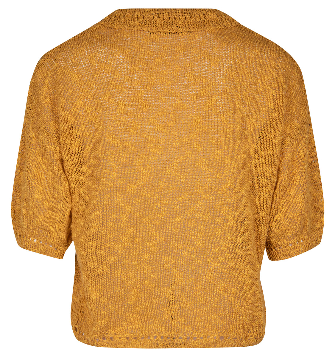 Lana Grossa-Qualität „Terra” (58 % перераб. лён, 42 % хлопок, длина нити = ок. 170 m/50 g): ок. 250 (300) г желтое солнце (цв. 13); сп. № 3 и 4, 1 кр. сп. № 3, длиной 60 см