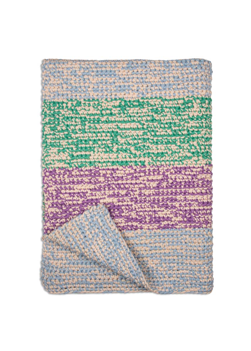 2000 г бежевой (цв. 17), 1000 г цвета мяты (цв. 10) и по 800 г цвета майской зелени (цв. 22) и цвета фиалки (цв. 20) пряжи The Tube (60% хлопка, 40% полиамида, 114 м/200 г) фирмы Lana Grossa; крючок № 10.