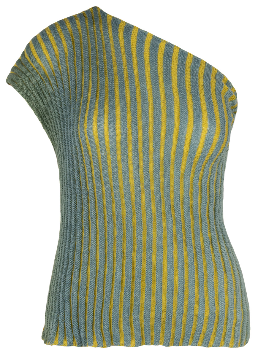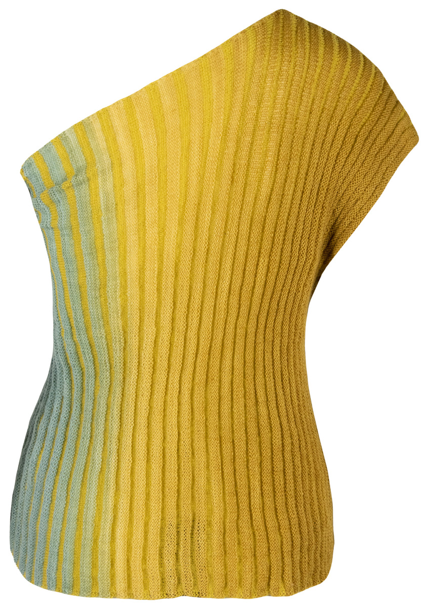 100 (200) г цвета Asha (цв. 814) пряжи Cool Wool Lace hand-dyed (100% овечьей (мериносовой) шерсти, 800 м/100 г) и 50 (100) г горчичной (цв. 8) пря- жи Cool Wool Lace (100% овечьей (мериносовой) шерсти, 400 м/50 г) фирмы Lana Grossa; круговые спицы № 3 дли- ной 60 см