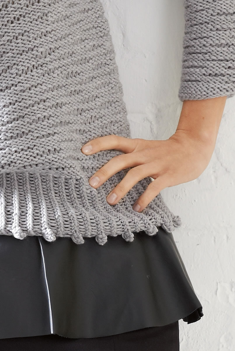 450 (500) г светло-серой меланжевой (цвет 14) пряжи Superbingo фирмы Lana Grossa (100% шерсти мерино экстрафайн, 55 м/50 г); прямые спицы №5 и 5,5, вязальный крючок №5.