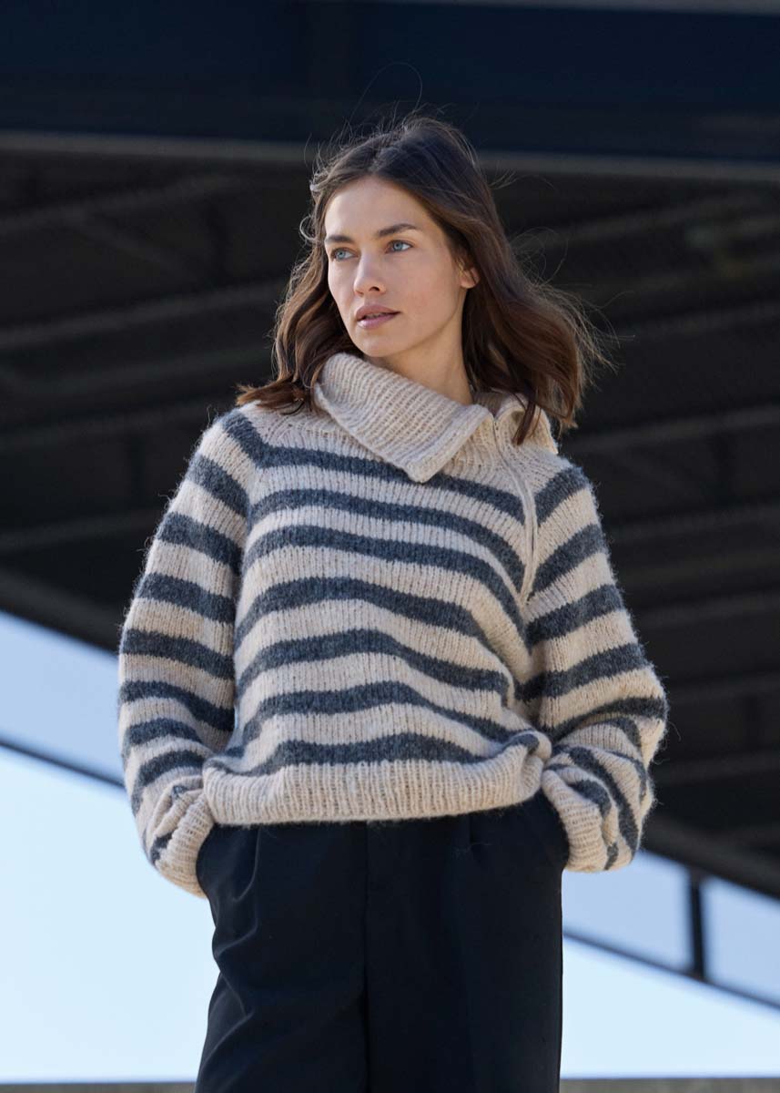 LANA GROSSA-QUALITÄT „BASTA“ (50 % ШЕРСТЬ (МЕРИНОС), 50 % ПОЛИАМИД, ДЛИНА НИТИ = CA 100 M/50 G): 150 Г СЕРЕБРИСТО СЕРЫЙ (ЦВ 4), LANA GROSSA-QUALITÄT „COOL MERINO“ (90 % ШЕРСТЬ (МЕРИНОС), 10 % ПОЛИАМИД, ДЛИНА НИТИ = CA 150 M/50 G): 100 Г БАКЛАЖАНОВЫЙ (ЦВ 25); СП. № 6.
