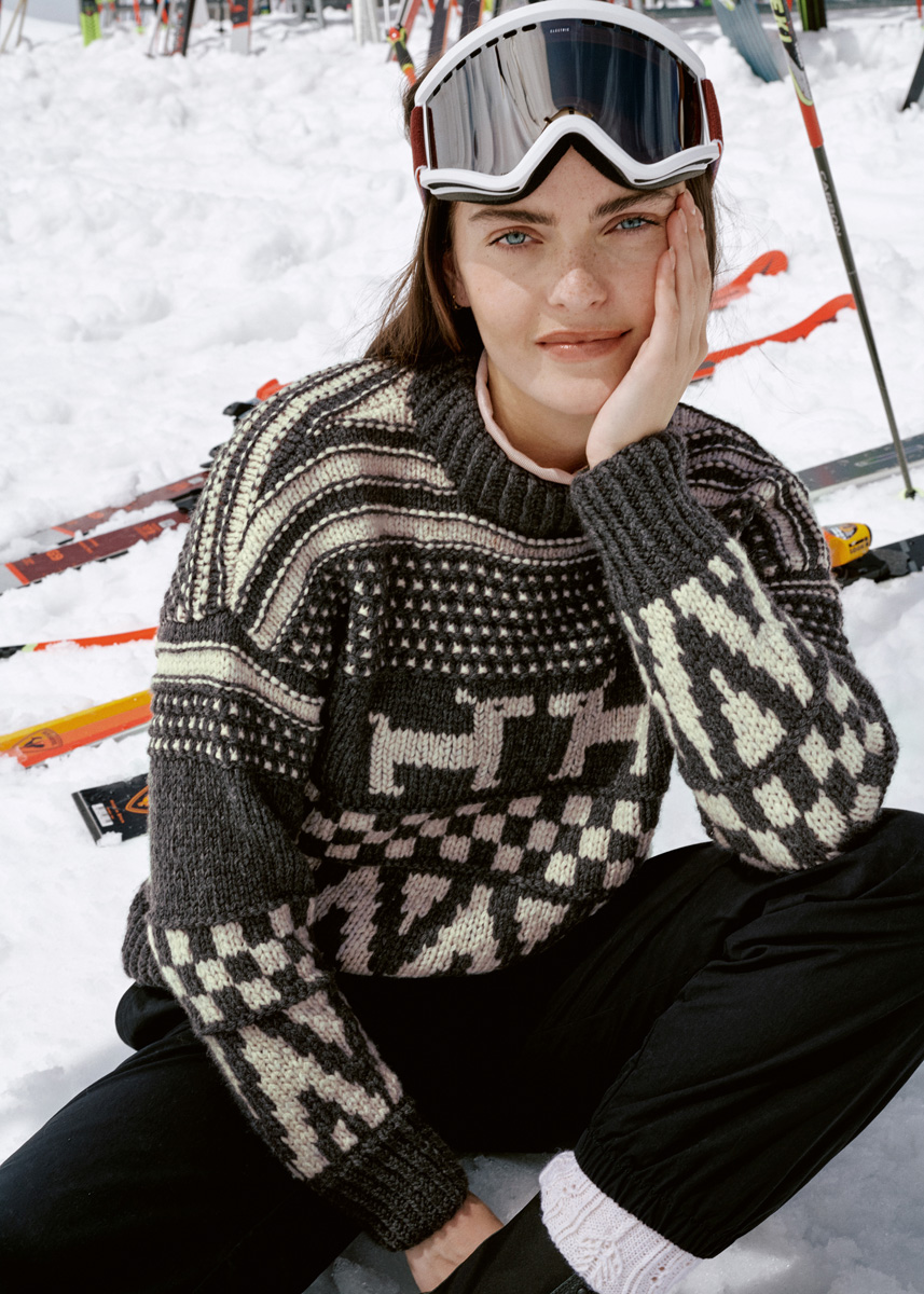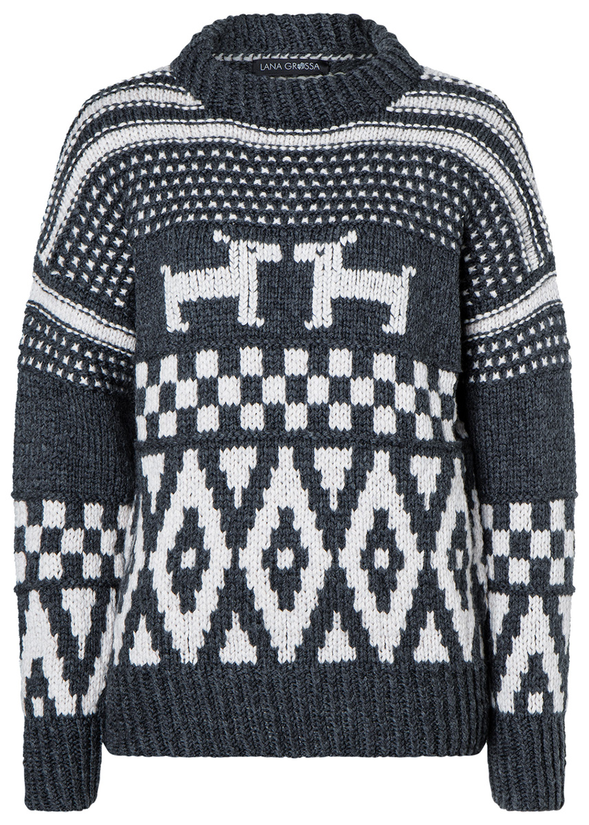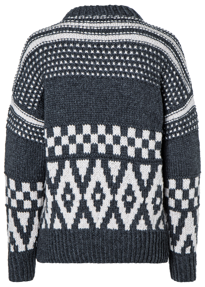400 (450–500) г иссиня-черной (цв. 13) и 200 (250–250) г нежно-белой (цв. 41) пряжи Alta Moda Cashmere 16 (78% шерсти мерино 16 микрон, 12% кашемира, 10% полиамида, 110 м/50 г) фирмы Lana Grossa; прямые спицы № 7 и № 8, круговые спицы № 7 длиной 40 см.