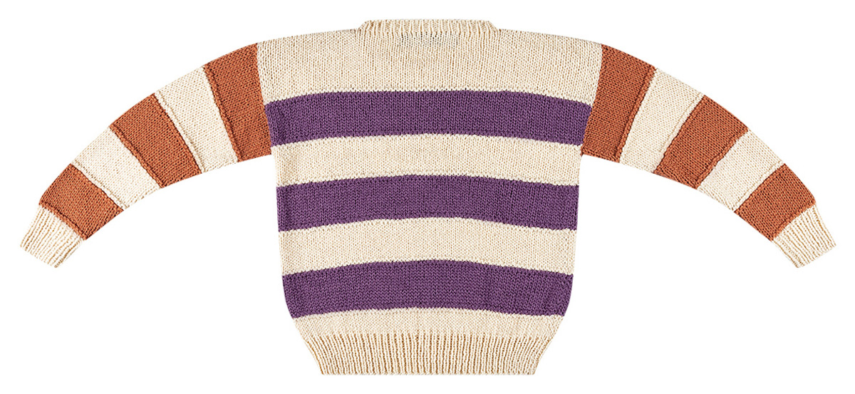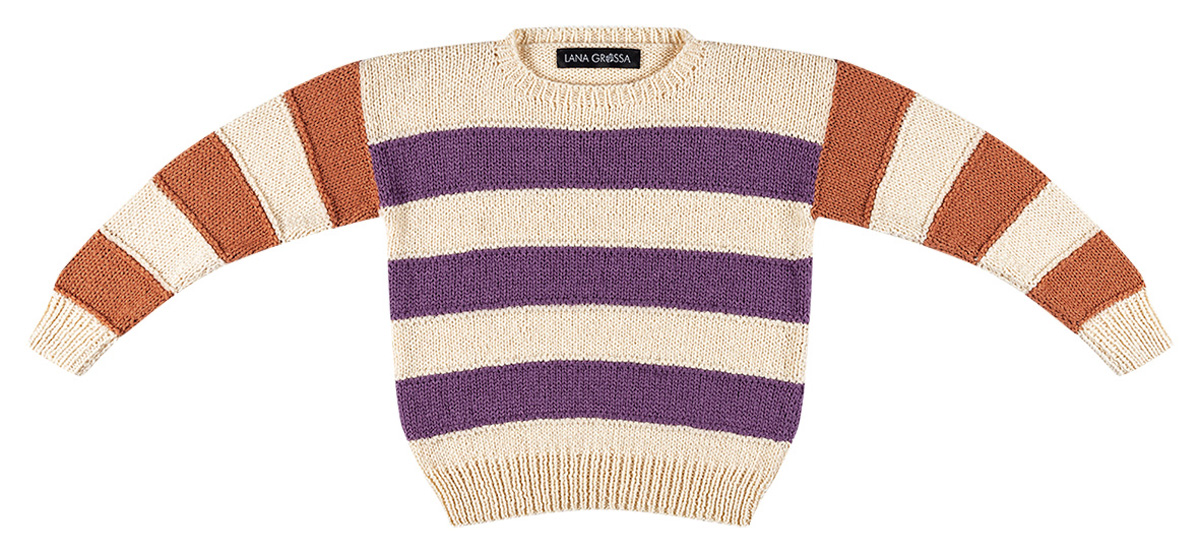 100 (150–150) г цвета экрю (цв. 20), 50 (100–100) г сливовой (цв. 5) и 50 (100–100) г цвета коричневой корицы (цв. 3) пряжи Alta Moda Cotolana (45% овечьей (мериносовой) шерсти, 45% хлопка пима, 10% полиамида, 150 м/50 г) фирмы Lana Grossa; прямые спицы № 3,5 и № 4, круго- вые спицы № 3,5 длиной 40 см