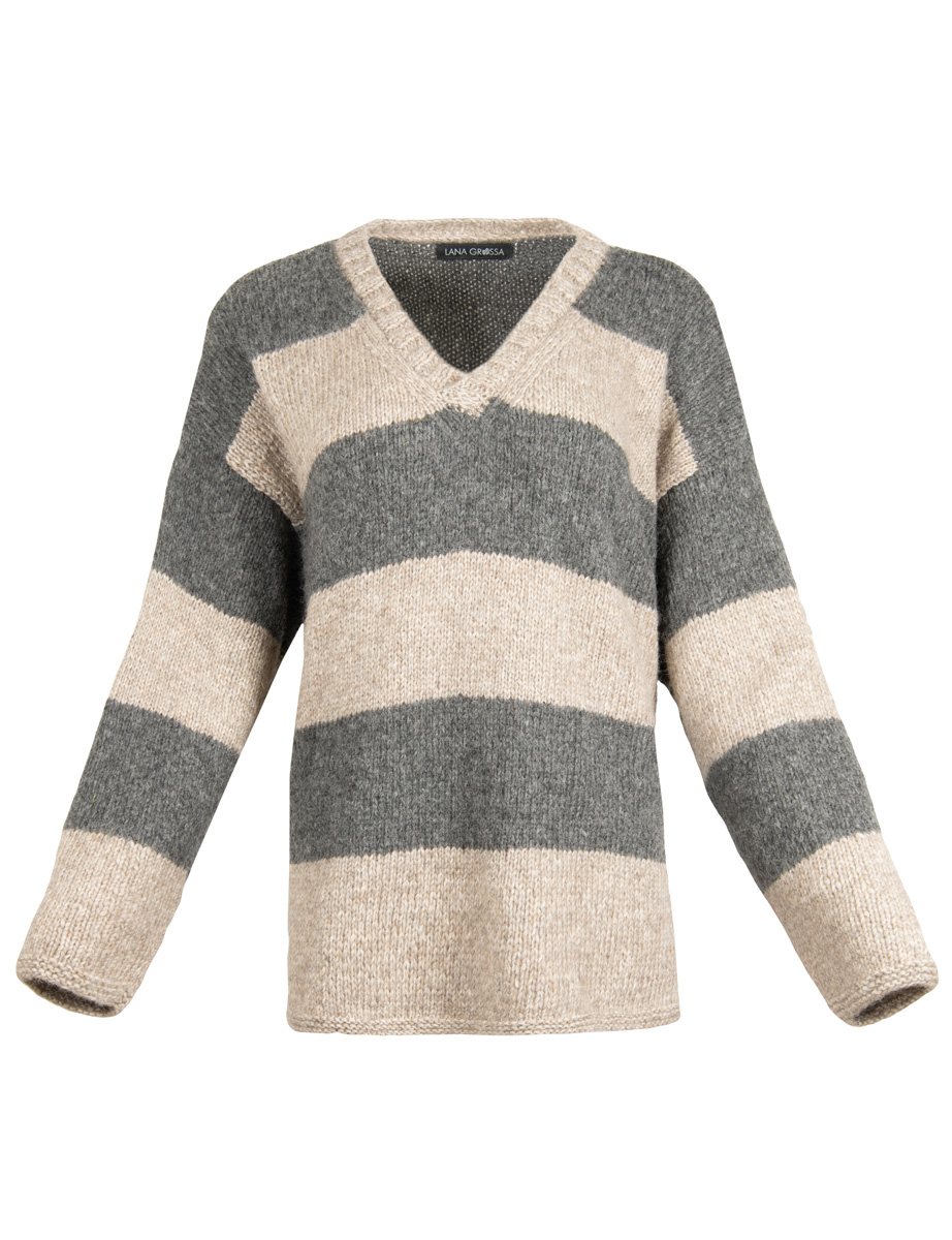 Lana Grossa Brigitte No. 2 (47% альпака, 45% хлопок, 8% шерсть, длина нити 140 m/50 g), по 200 (250) г цвет шифера (цв 24) и бежевый (цв 15); сп. № 6,0 и 5,5; крючок № 4,5