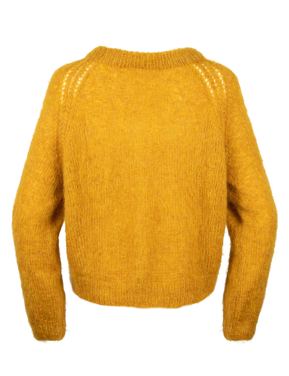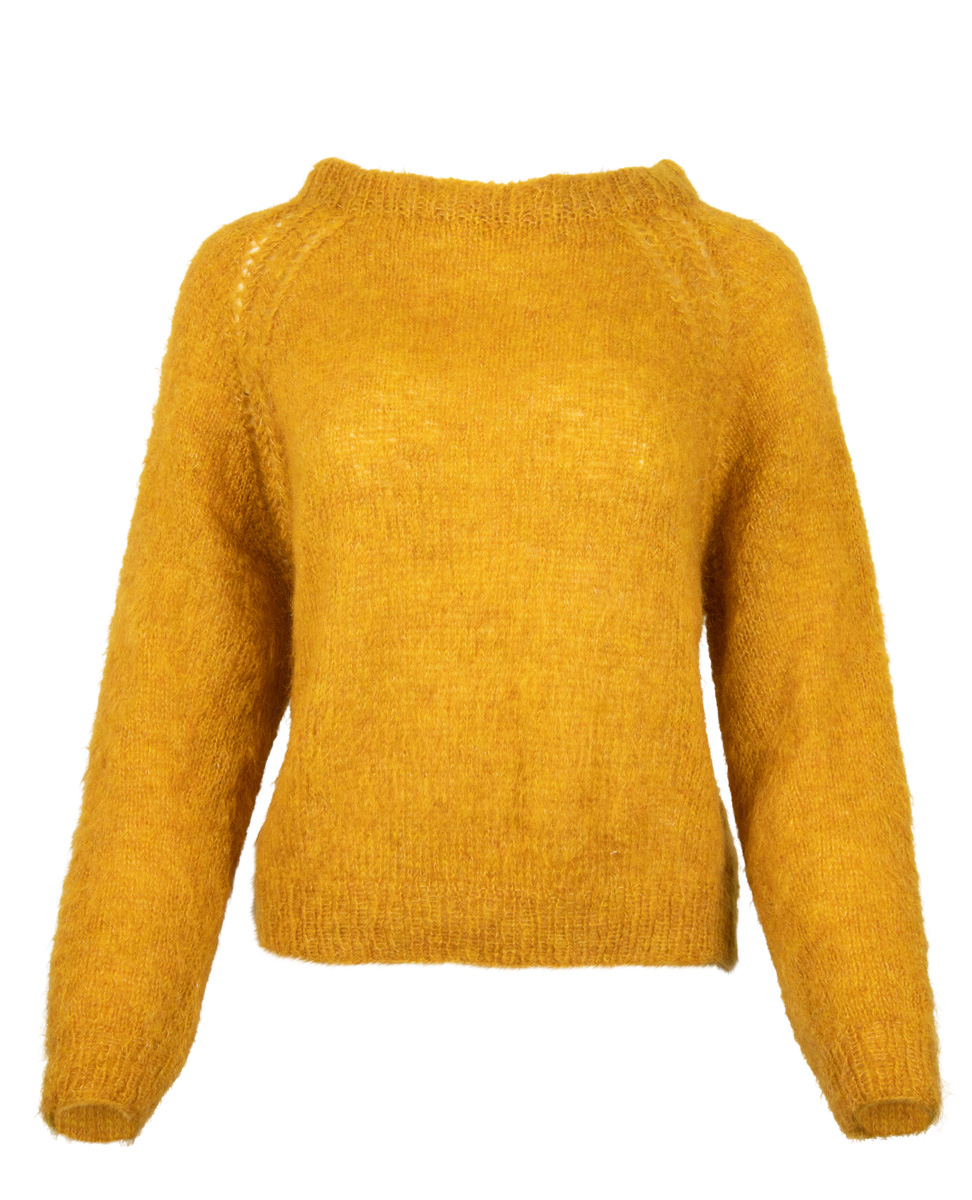 Lana Grossa Brigitte No. 3 (40% мохер, 37% шерсть, 23% полиамид, длина нитки 100 m/25 g), 175 г карри (цв 22); сп. № 4,5 и 5,0; 1 вспом. сп., 3 вспом. сп