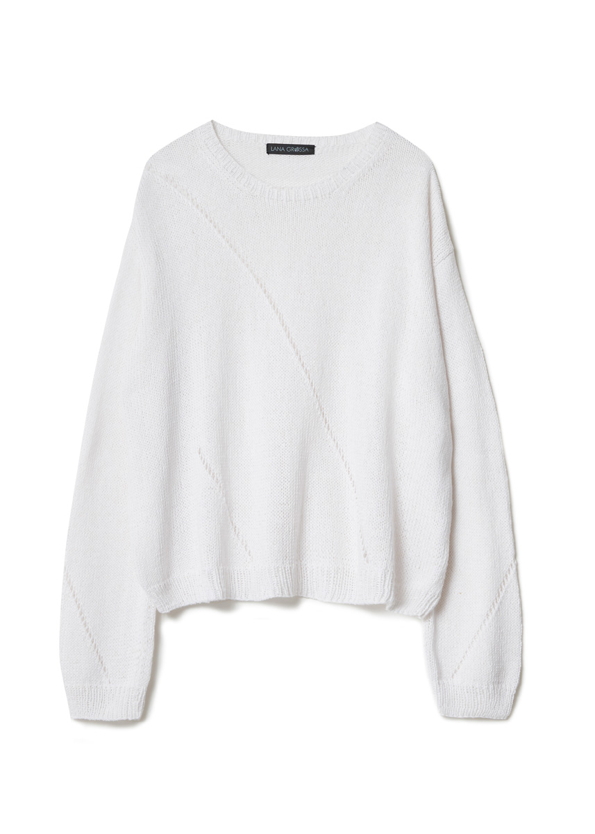 300 (350–400–450) г белой (цв. 1) пряжи Campo (65% хлопка, 25% вискозы, 10% льна, 165 м/50 г) фирмы Lana Grossa; прямые спицы № 3 и № 4, а также круговые спицы № 3 длиной 40 см