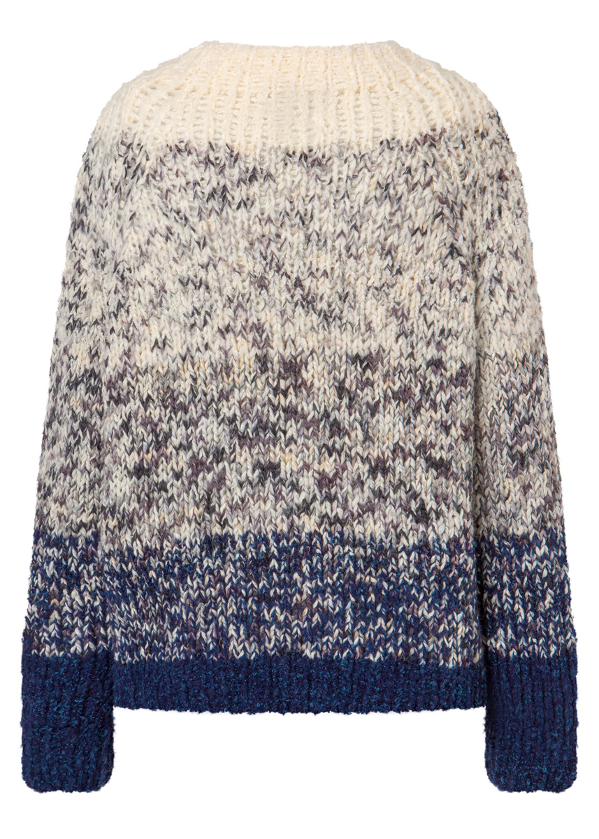 150 (200–200) г белой суровой (цв. 1) и 150 (200–200) г тем- но-синей (цв. 12) пряжи Cocco (62% шер- сти мерино, 25% хлопка, 12% полиамида, 1% эластана, 135 м/50 г), 300 (350–400) г белой/светло-/темно-серой (цв. 7) пряжи Colortwist (74% шерсти мерино, 20% хлоп- ка, 6% полиамида, 90 м/50 г) фирмы Lana Grossa; прямые спицы № 7 и № 10, круговые спицы № 7 длиной 40 см