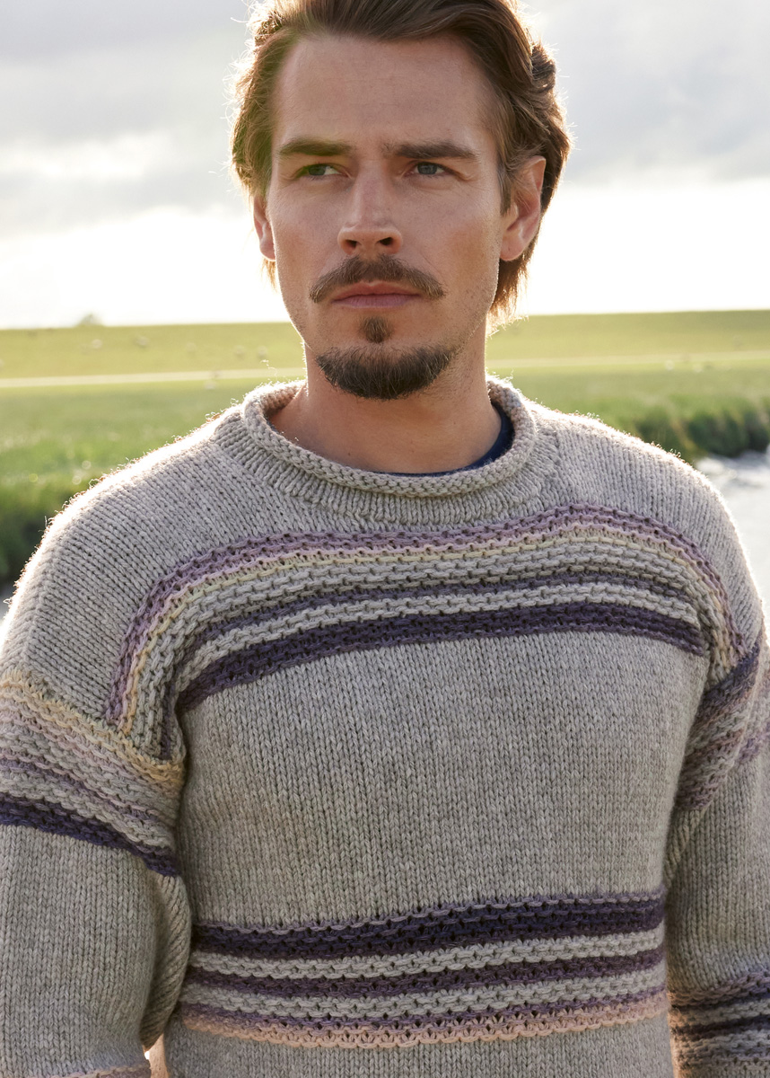 Lana Grossa Cool Merino Big (90% меринос, 10% полиамид, длина нити 90 m/50 g), 500 (550 – 600) г светло серый (цв 218) и Lana Grossa Pappagallo (90% шерсть (меринос), 10% полиамид, длина нити 250 m/100 g), 200 (300 – 300) г серо-коричневый/серо-коричневый/тёмно- синий /серо-синий/чёрно-коричневый/розого-бежевый/ серо-бежевый/тёмно-серый/ средне-серый/жёлтый (цв 2); сп. № 6 и 1 кр. сп. № 6, 40 см