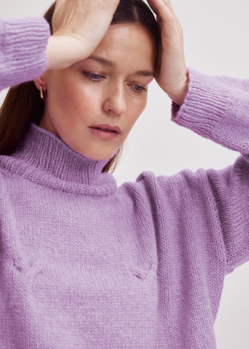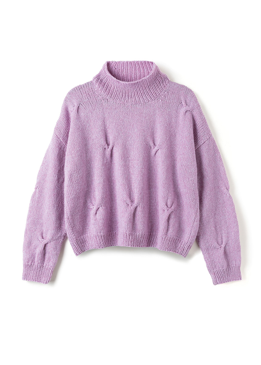 Lana Grossa-Qualität „Cool Merino Color“ или „Cool Merino“ (90 % шерсть (меринос), 10 % полиамид, длина нити = ок.150 m/50 g): ок 450 (500 - 550 - 600) г темная фуксия/цвет ржавчины/серо-синий/пинк /тёмно- желтый/горчично-желтый/королевский/бирюзовый /жёлто- зеленый/оранжевый/пинк (цв 315) или сирень (цв 32); сп. № 4 и 6; 1 вспом. сп.; 1 кр. сп. № 4.