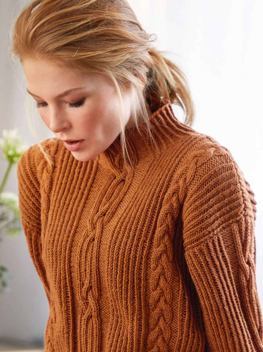 Lana Grossa-Qualität „Cool Wool Big Mélange“ (100% шерсть, длина нитки ок. 120 m/50 g) ок. 650 (700 - 750 - 800) г терракотовый меланжевый (цв 348); сп. и кр. сп. № 5, вспом. сп
