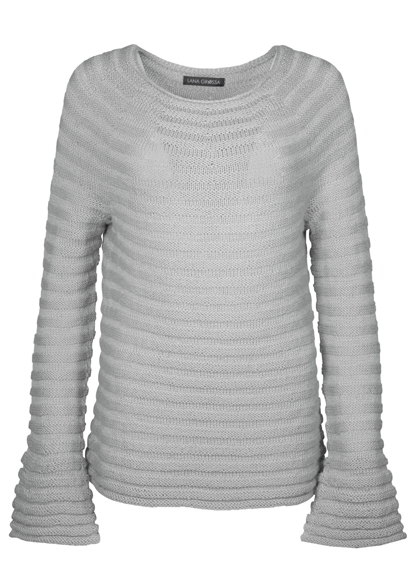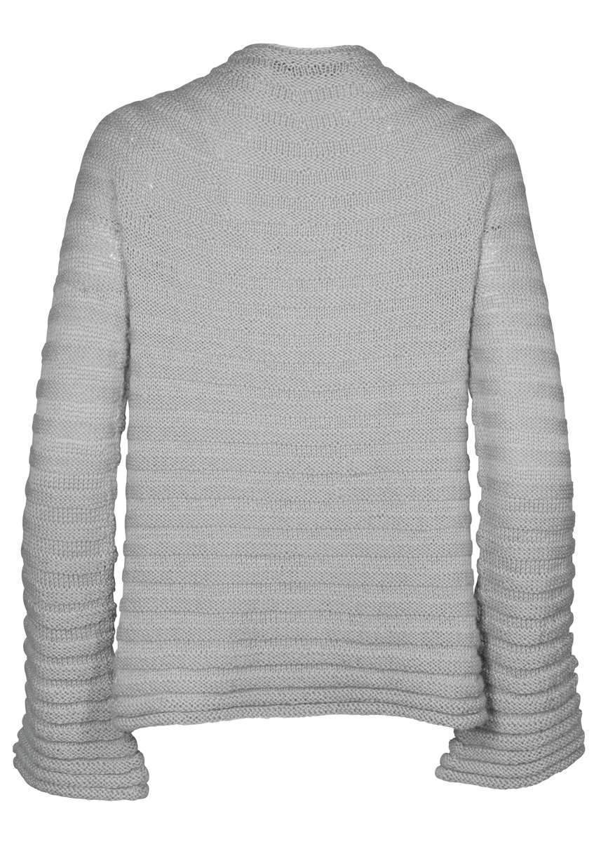 Lana Grossa Cool Wool Cashmere (90% меринос, 10% кашемир, длина нити 160 m/50 g), 400 (450 – 500 – 550) г серый камень (цв 29); 1 кр. сп. № 4,5, длиной 40, 60, 80 см, чул. сп. № 4,5 и 4 марк