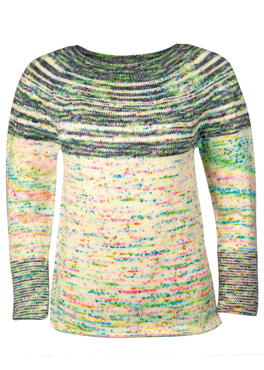 Lana Grossa Cool Wool hand-dyed (100% шерсть, длина нити 320 m/100 g), 300 (400 – 500) г чисто-белый/ неоново-жёлтый/пинк/ бирюзовый оливковый (цв 103) и 200 г средне-серый/тёмно-серый /розовый/ пинк/бирюзовый/ оранжевый (цв 105); 1 кр. сп. № 3, длиной 40 см, по 1 кр. сп. № 3,5, длиной 40, 60 и 80 см, 1 чул. сп. № 3,5