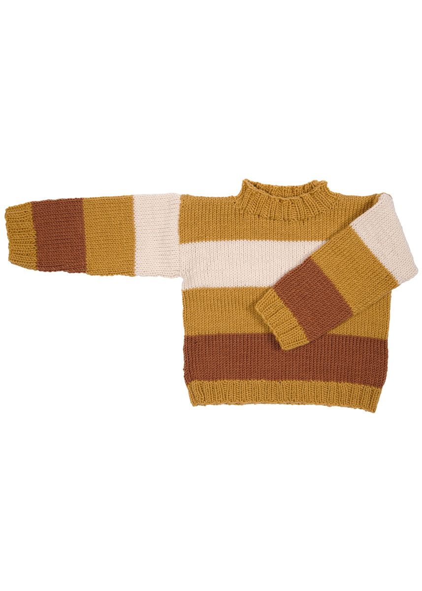 50 (100/100) г медово-желтой (цв. 2035), 50 г цвета карамели (цв. 2054) и 50 г цвета ванили (цв. 411) пряжи Cool Wool (100% овечьей (мериносовой) шерсти, 160 м/50 г) фирмы Lana Grossa; прямые спицы № 4, круговые спицы № 4 длиной 40 см