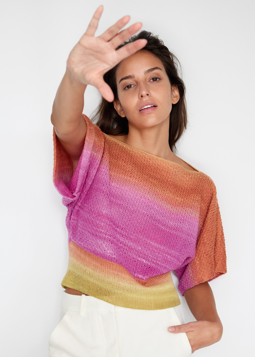Lana Grossa Cool Wool Lace hand-dyed (100% шерсть (меринос), длина нити 800 m/100 g), 200 (200–300) г Disha (цв 801); сп. № 3, 1 кр. сп. № 2,5, длиной 60 см и 1 крючок № 2,5