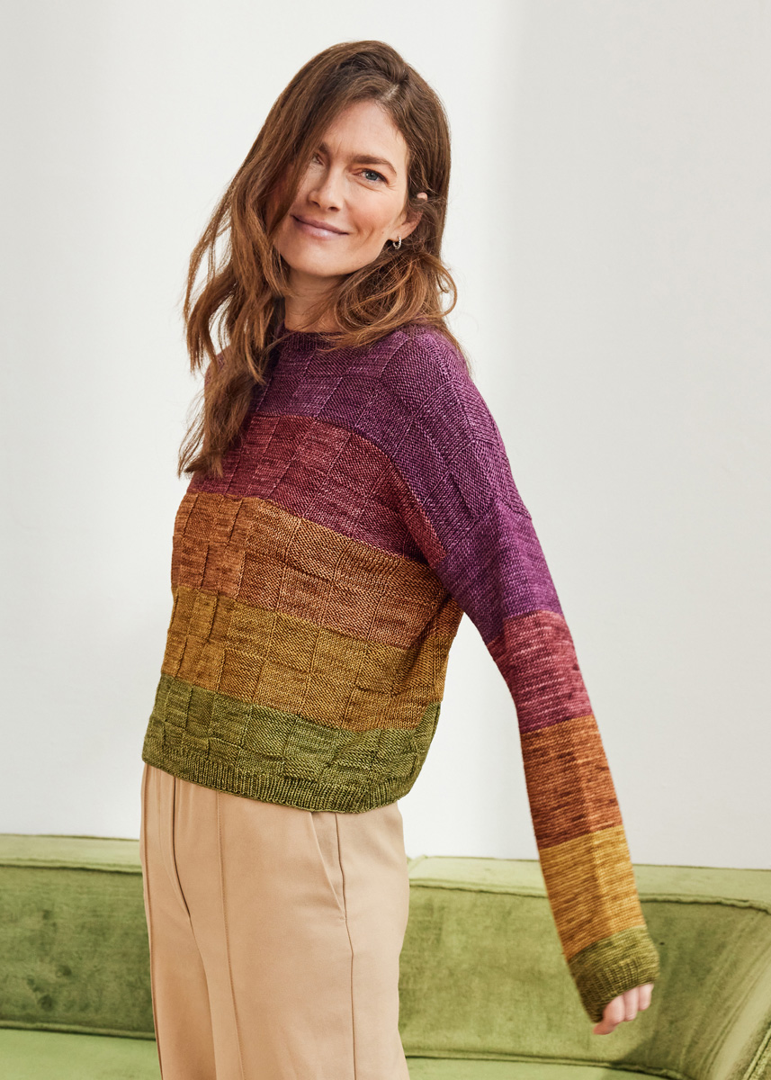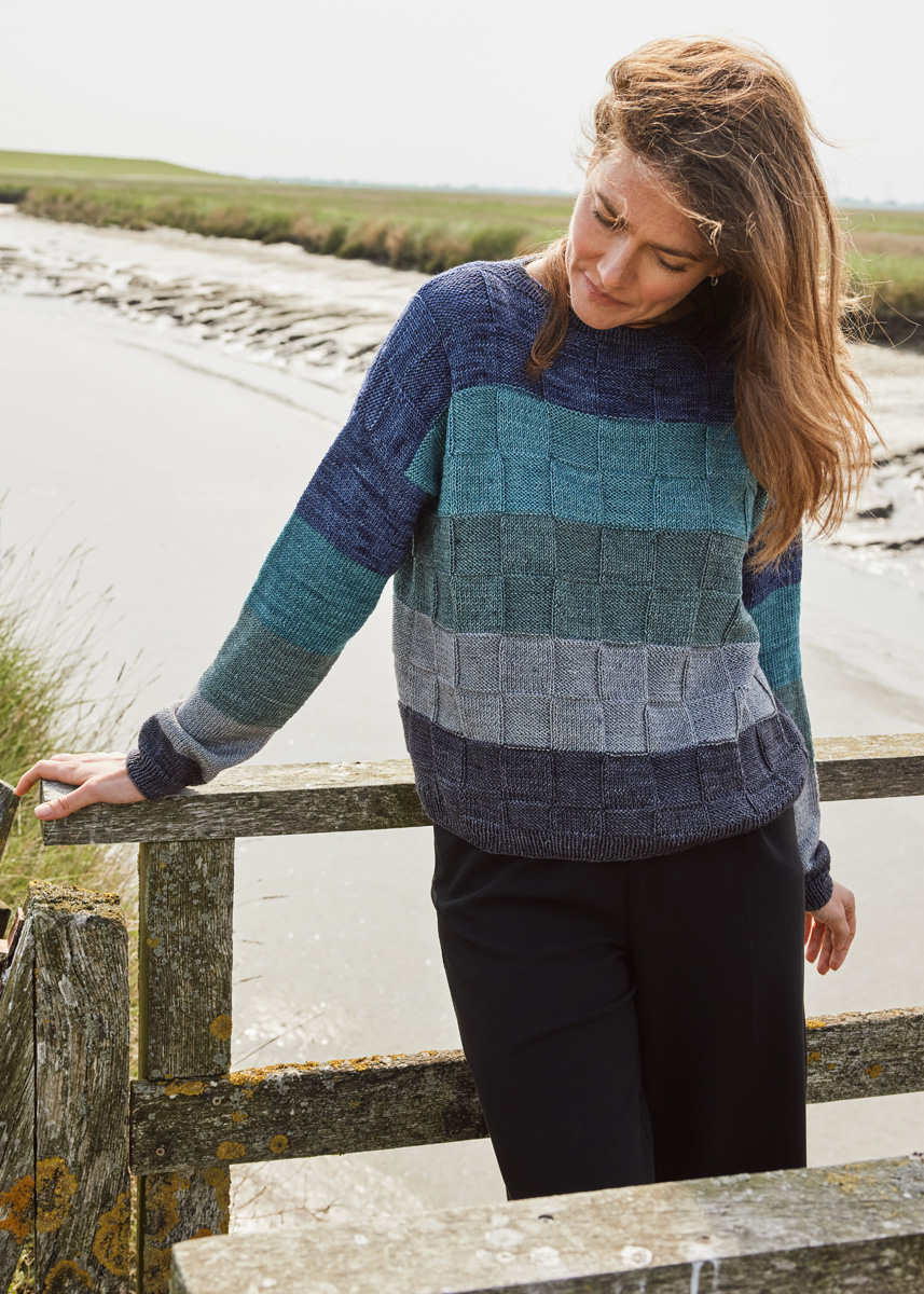 Lana Grossa-Qualität „Cool Wool Vintage“ 100% шерсть (меринос), длина нити = 160 m/50 g); по 100 (100 - 150 - 150) г антрацит (цв 7370), светло серый (цв 7369), зелено серый (цв 7368), петроль (цв 7367) и темно коричневый (цв 7366) Материал B: Lana Grossa-Qualität „Cool Wool Vintage“ 100% шерсть (меринос), длина нити = 160 m/50 g); по 100 (100 - 150 - 150) г оливковый (цв 7361), горчица (цв 7362), легко коричневый (цв 7363), бургунд (цв 7364) и слива (цв 7365); сп. № 3 и 3,5, кр. сп. № 3