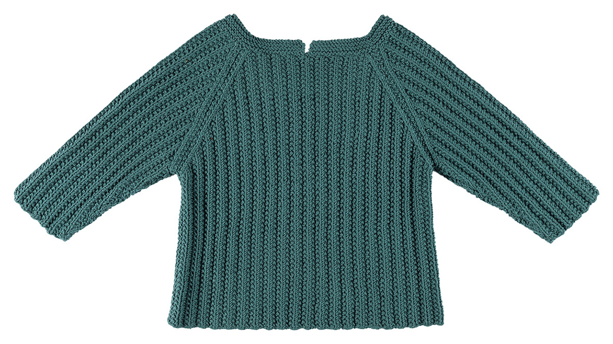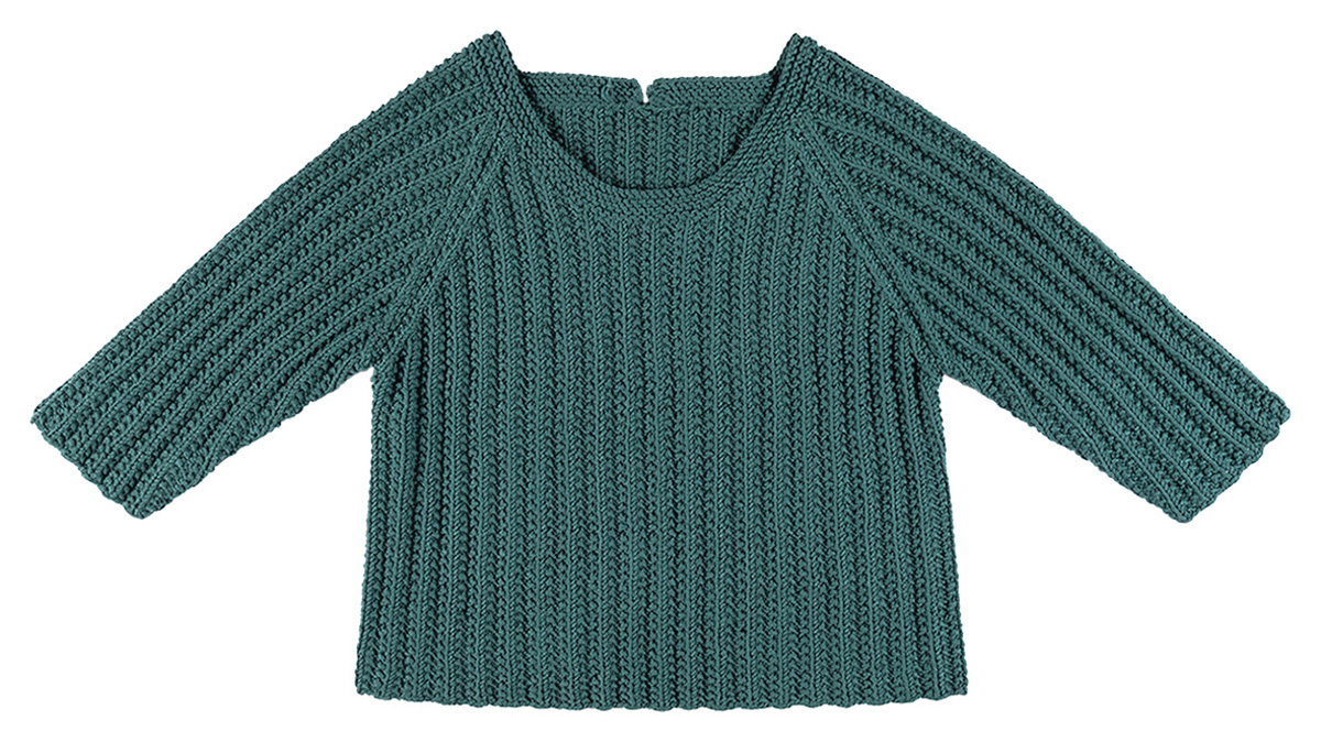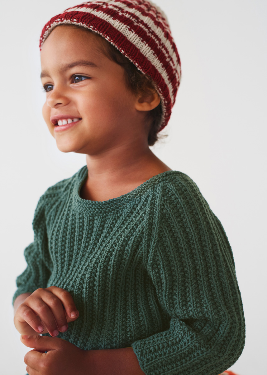 250 (250–300) г темно-зеленой (цв. 147) пряжи Elastico (96% хлопка, 4% полиэстера, 160 м/50 г) фирмы Lana Grossa; пря- мые спицы № 3 и круговые спицы № 3 длиной 40 см
