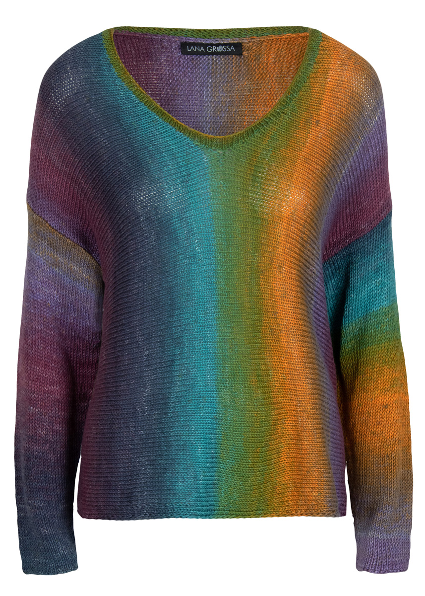 Lana Grossa Gomitolo Aloha (50 % хлопок, 50 % вискоза, длина нитки 250 m/100 g), 500 (500 – 600) г охра/ежевика/умбра баклажановый/ нефрит/бирюзовый/зелёный (цв 303); сп. № 4,5, 1 кр. сп. № 4, 40 см длиной