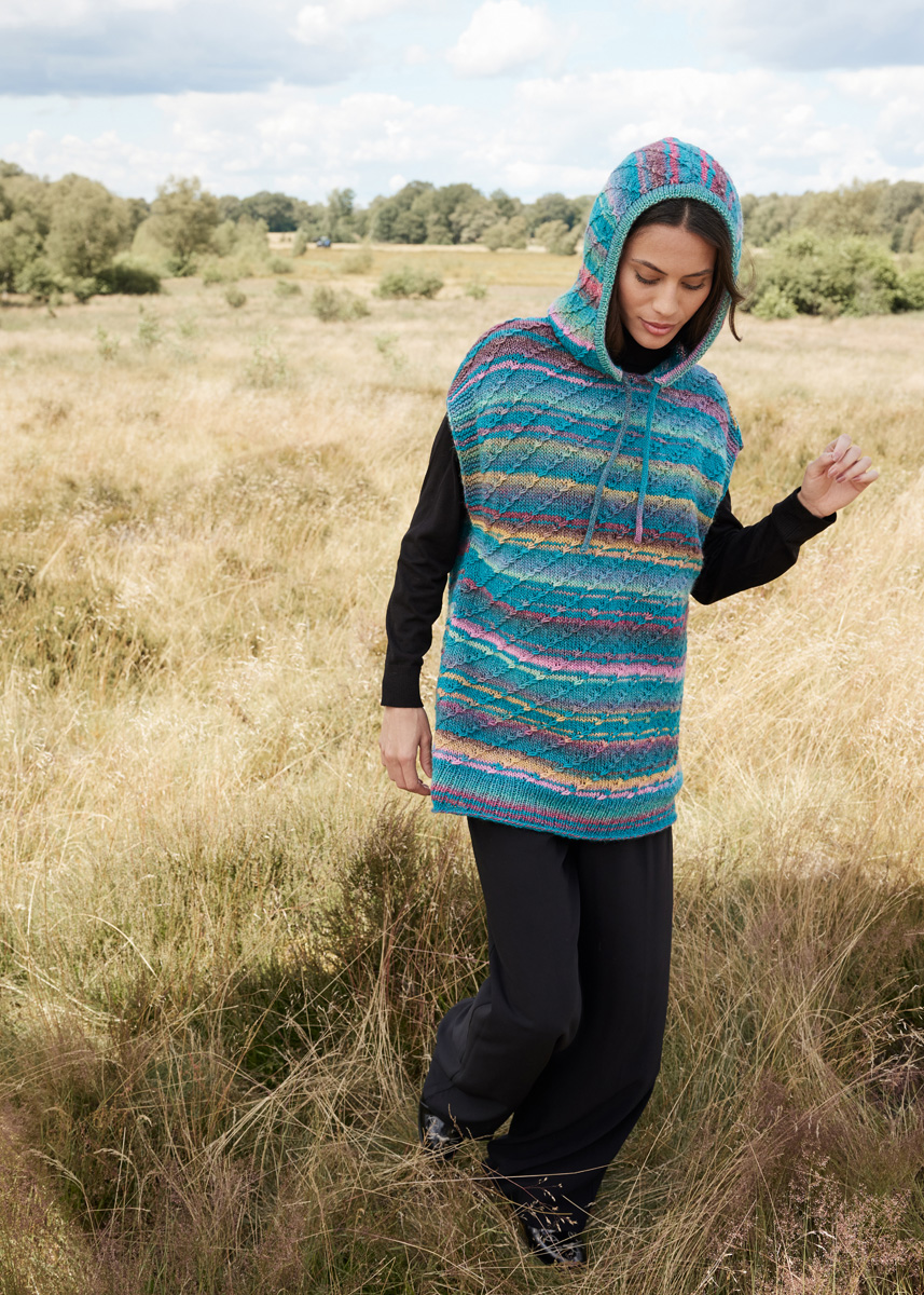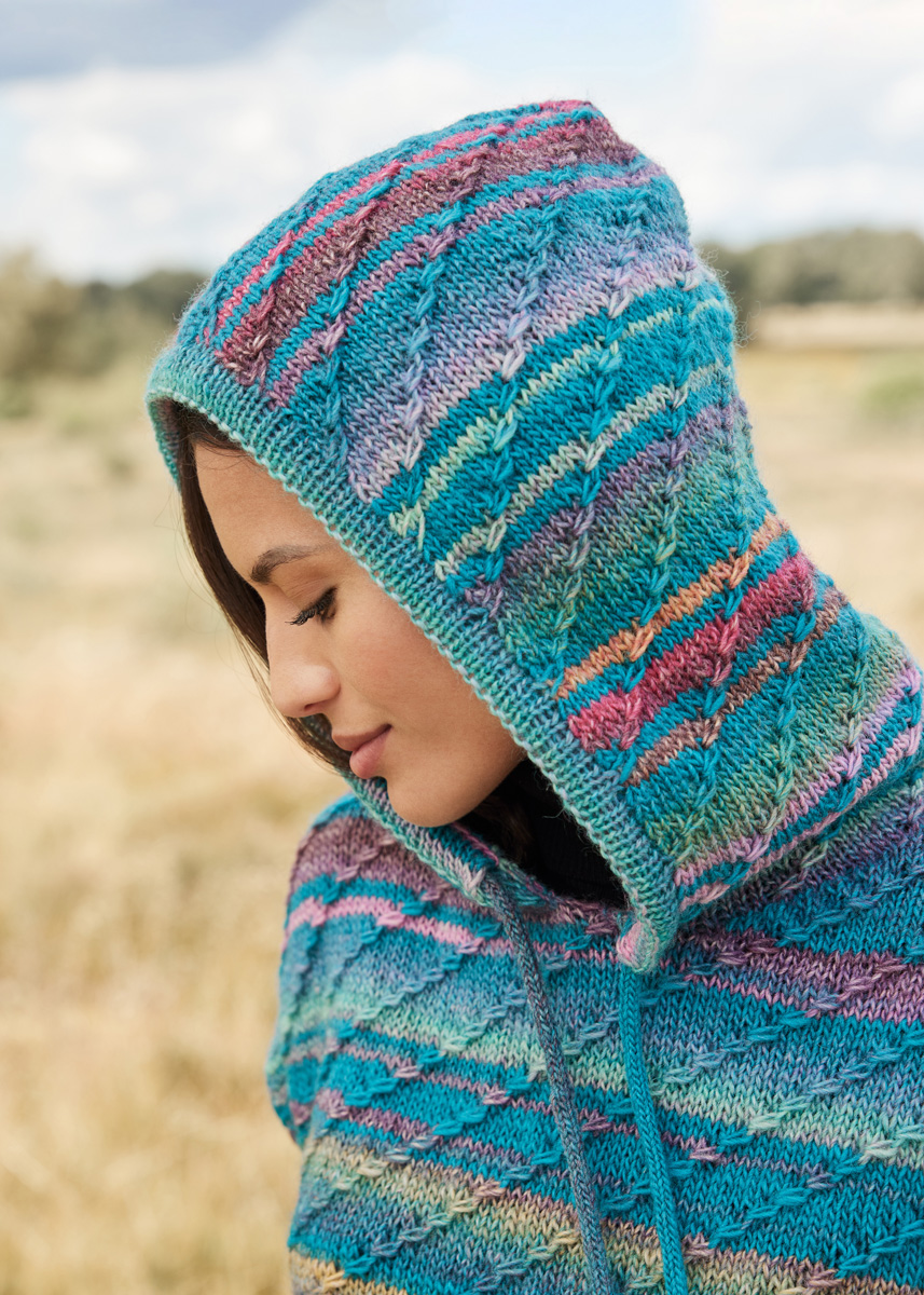 Lana Grossa-Qualität „Gomitolo Magico“ (60 % шерсть, 40 % полиакрил, длина нити = ca 700 m/200 g): 2 (2 - 2 - 2) = ок 400 (400 - 400 - 400) г EAN: 4033493368827 (цв 3024); сп. № 4 и 4,5; кр. сп. № 4 и 4,5; вспом. сп.; 2 чул. сп. № 4