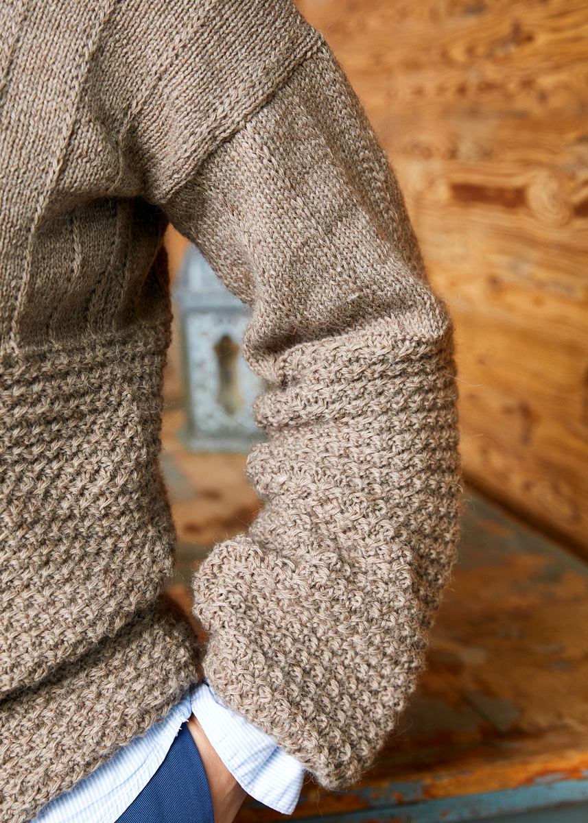 Lana Grossa-Qualität „Landlust Alpaka Merino 160“ (50% беби альпака, 50% шерсть меринос, длина нити 160 m/50 g), 500 (550–600–650) г серо-коричневый (цв 404); сп. № 4,5, 1 кр. сп. № 4,5, длиной 40 см