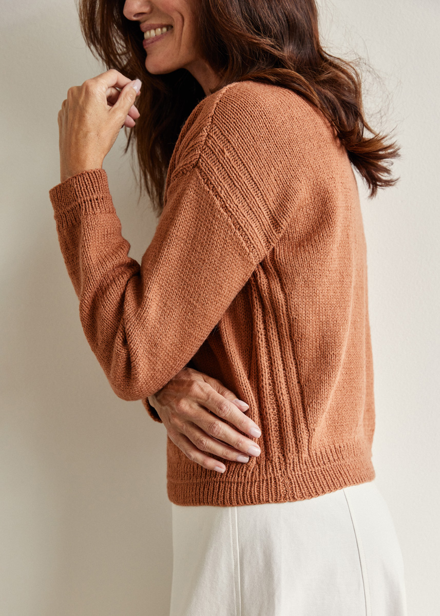 400 (450–500) г терракотовой (цв. 426) пряжи Landlust Alpaka Merino 160 (50% альпака бэби, 50% шерсти мерино, 160 м/50 г) фирмы Lana Grossa; прямые спицы № 3 и № 4, а также круговые спицы № 3 длиной 40 см