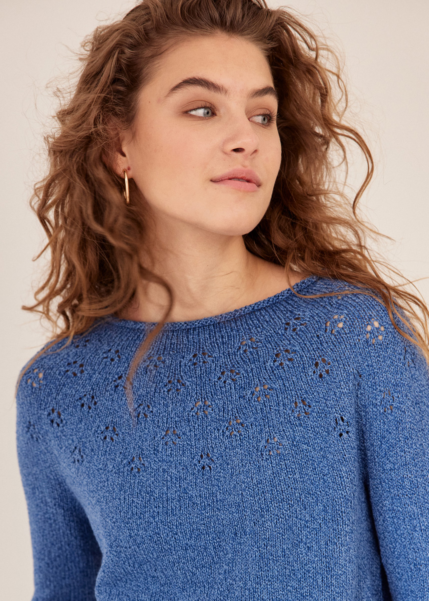 Lana Grossa Landlust Sommerseide (50% шёлк, 50% хлопок, длина нити 170 m/50 g); ок. 350 (400–400–450) г синий (цв 7); кр. сп. длиной 40 и 80 см и 1 чул. сп. № 3–3,5