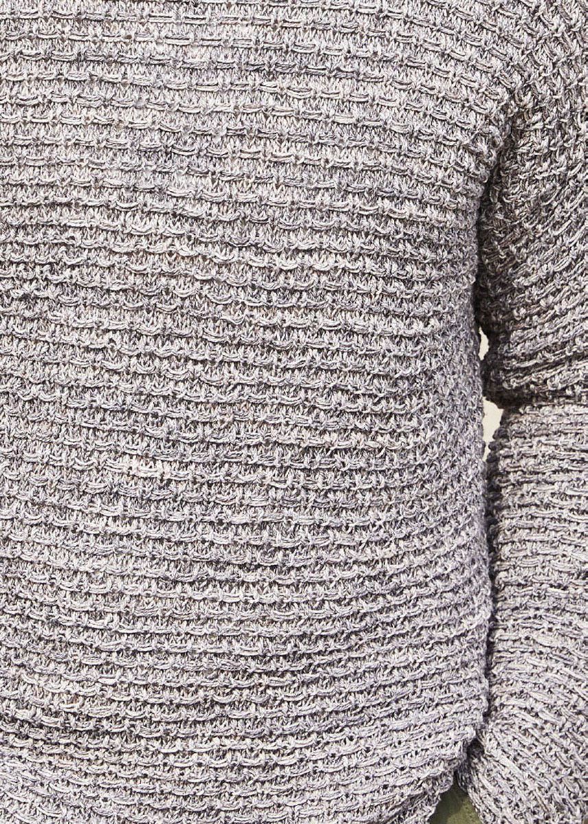 Lana Grossa-Qualität „Landlust-Sommerseide“ (50% шёлк, 50% хлопок, длина нити 170 m/50 g), 650 (700–750) г серо-коричневый/серо-бежевый меланжевый (цв 114); сп. № 4,5, 1 кр. сп. № 3,5, длиной 50 см.