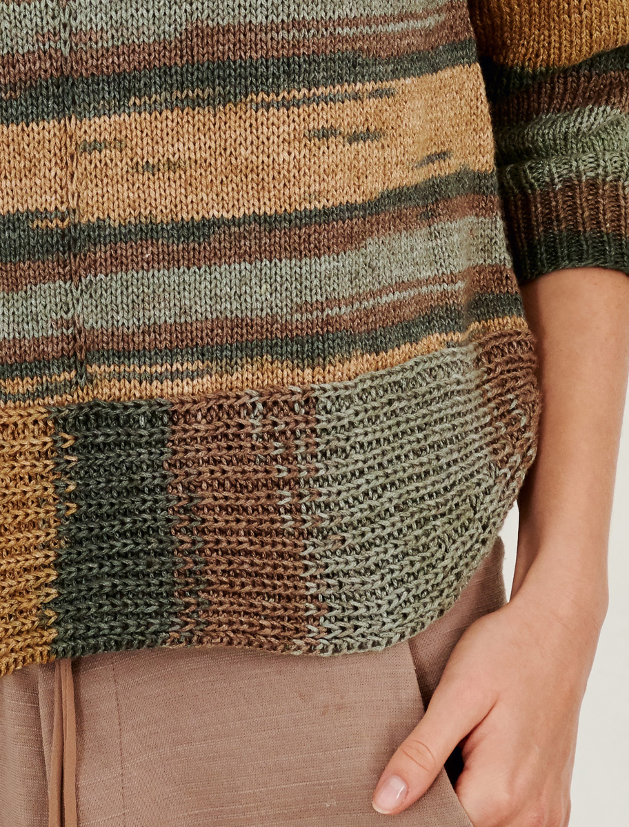 Lana Grossa Linarte Dégradé (40 % вискоза, 30 % хлопок, 20 % лён, 10 % полиамид; Длина нити: около 125 m / 50 g), 450 (500 – 550) г бежевый/серо-коричневый/серо- зелёный/графит (цв 202); спицы № 3 и 4, кр. спицы № 3, длиной 40 см