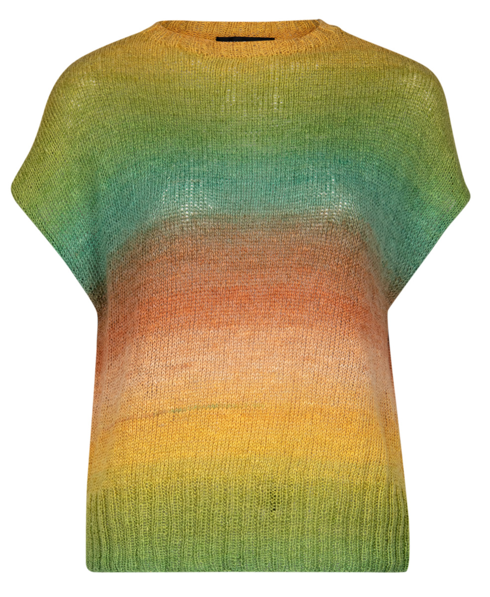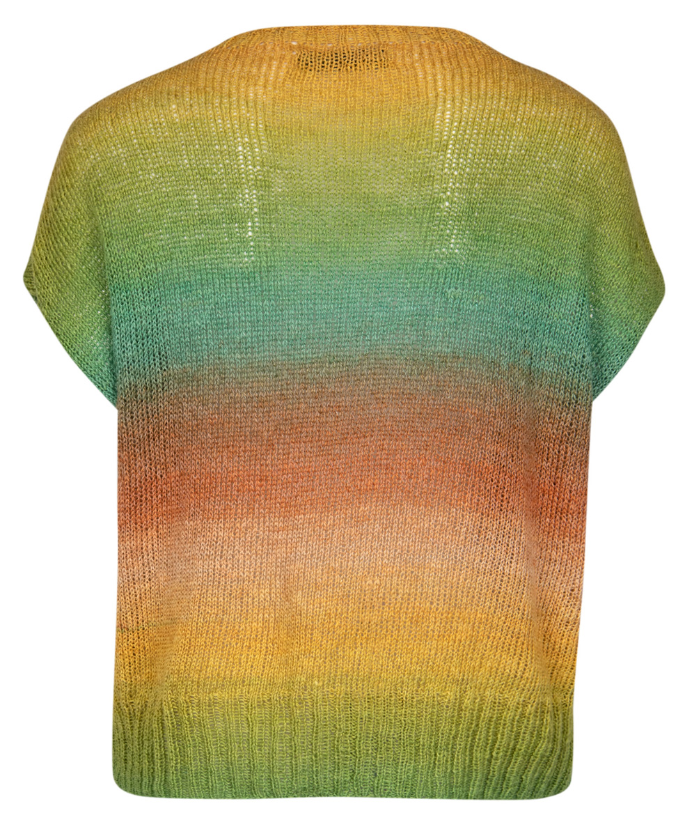 Lana Grossa-Qualität „Mare” (50 % лён, 33 % шёлк, 17 % хлопок, длина нити = ок. 330 m/100 g): ок. 300 (300–400) г светло-оливковый/ горчично-желтый/ желтое солнце/ персик/коричневый/ терракотовый / нефрит (цв. 9); сп. № 3 и 3,5, 1 кр. сп. № 3, длиной 50 см