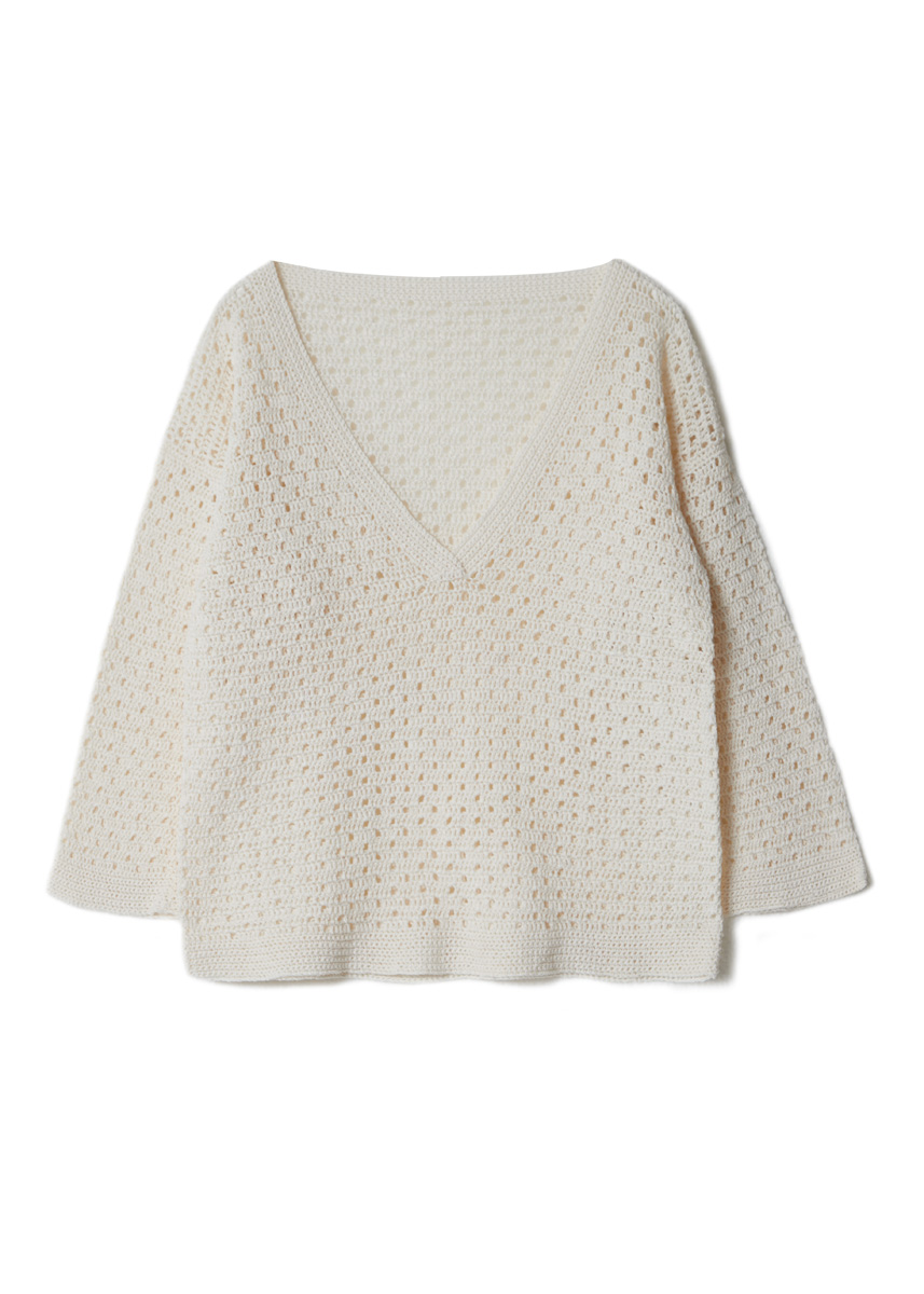 Lana Grossa-Qualität „Nastrino” (100 % хлопок, длина нити = ок. 190 m/50 g): ок. 350 (400) г кремовый (цв. 2); крючки № 3 и 3,5