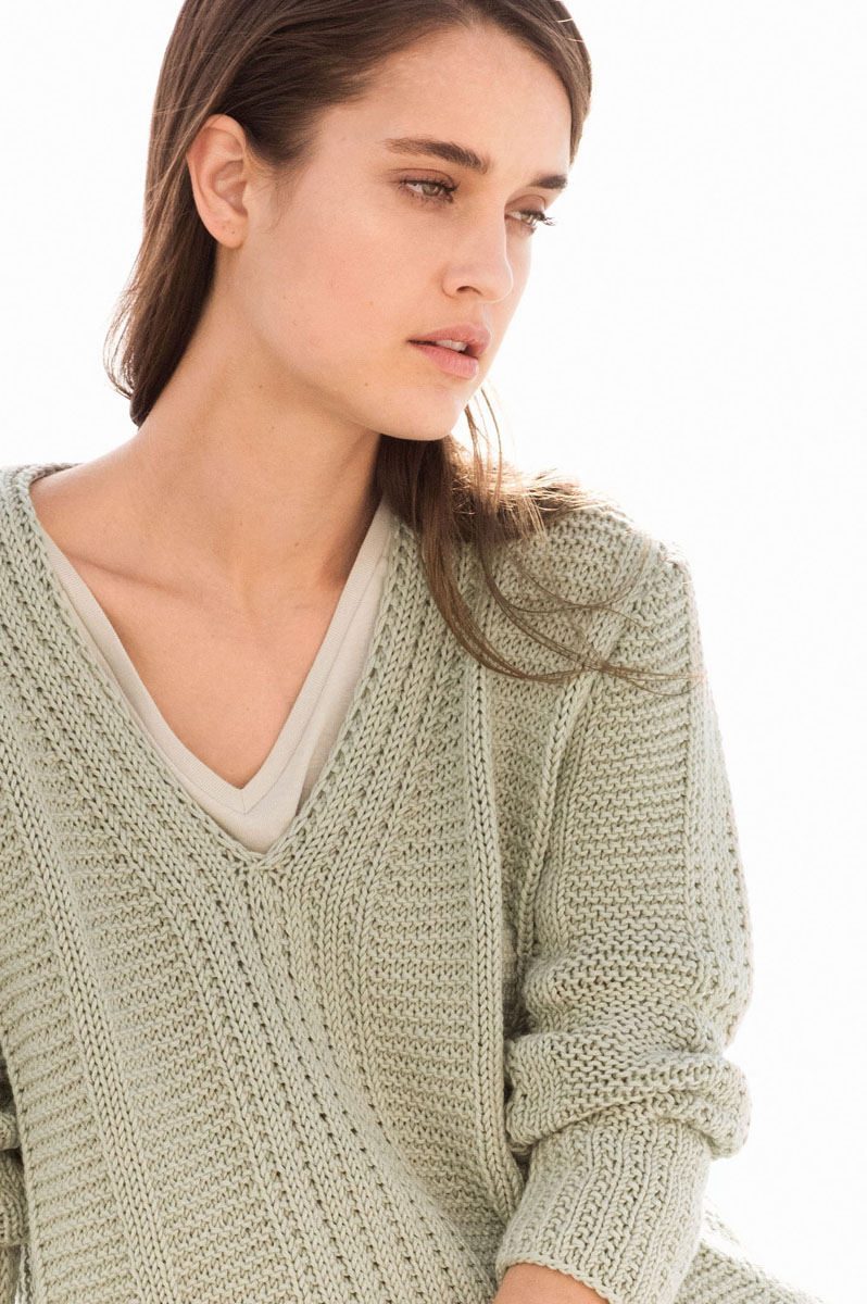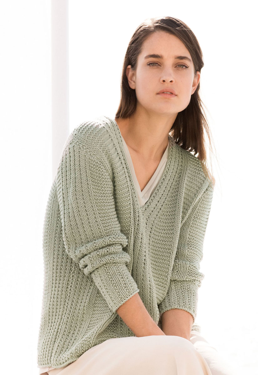500 (550 – 600) г камышово-зеленой (цвет 89) пряжи Organico фирмы Lana Grossa (100 % хлопка, 90 м /50 г); прямые спицы № 5.