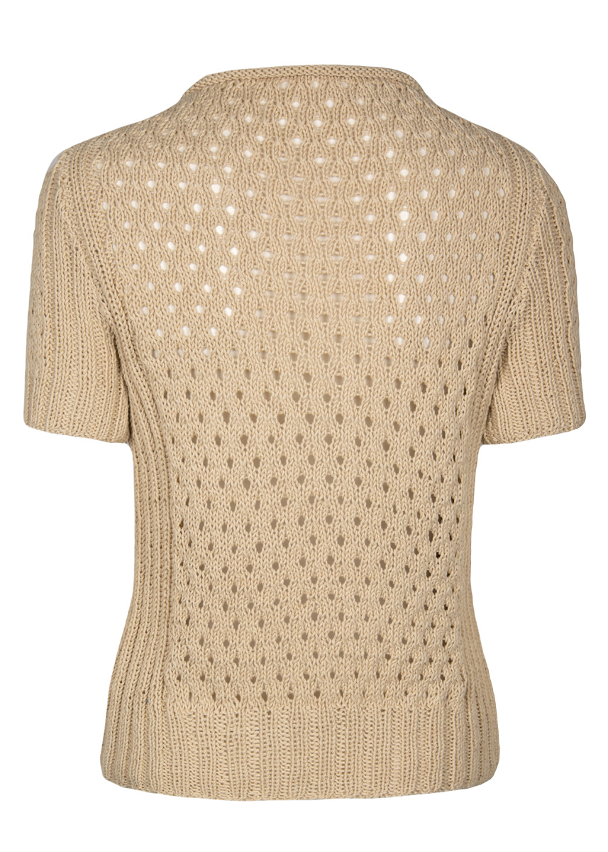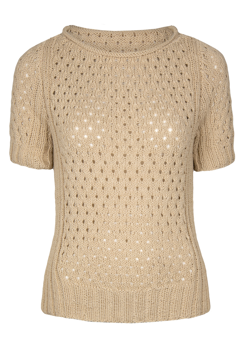 300 (350–400) г бледно-желтой (цв. 12) пряжи Pima (100% хлопка пима, 125 м/50 г) фирмы Lana Grossa; прямые спицы № 4,5, круговые спицы № 3,5 длиной 40 см, крючок № 3,5