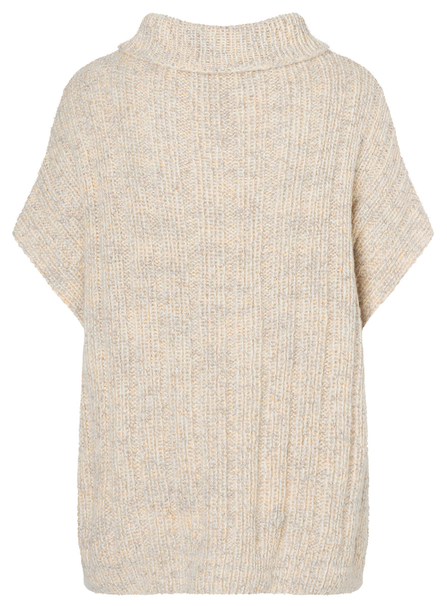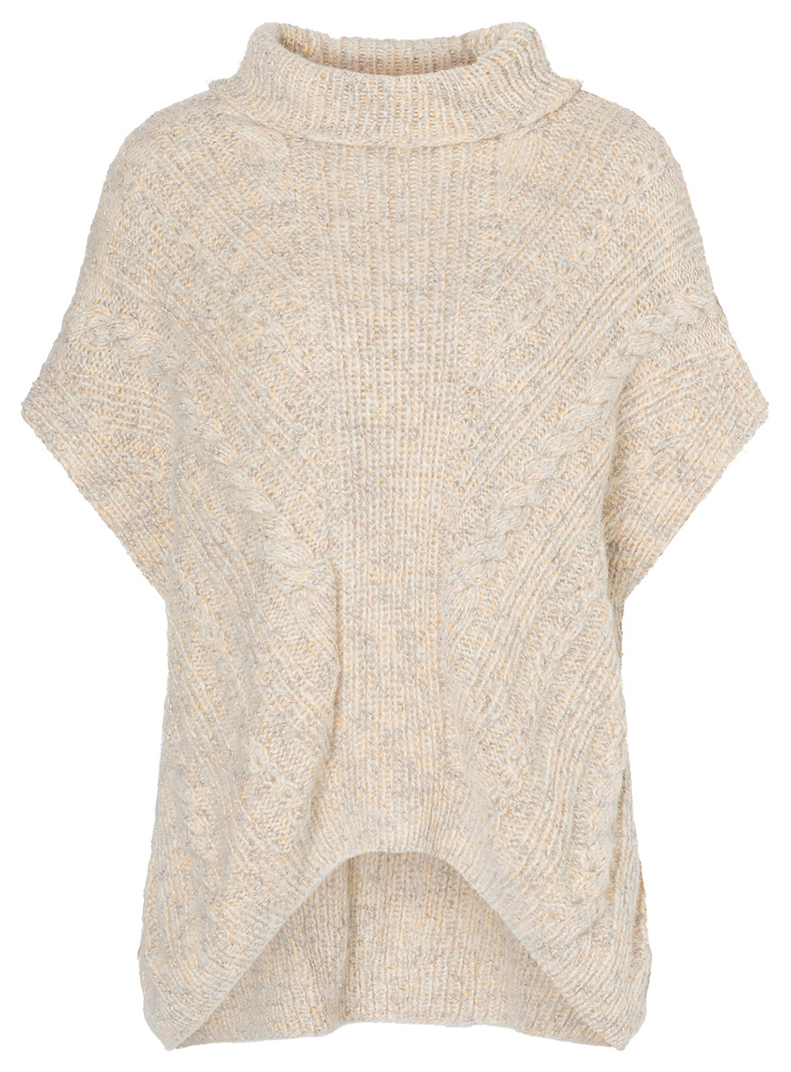 400 г бежевой/золо- тисто-желтой меланжевой (цв. 19) пряжи Sara ( 65% х лопка, 3 0% ш ерсти ( ягненка) альпака, 5% овечьей (мериносовой) шер- сти, 125 м/50 г) фирмы Lana Grossa; пря- мые спицы № 4 и № 5, круговые спицы № 4 длиной 50 см, 1 вспомогательная спица для кос.