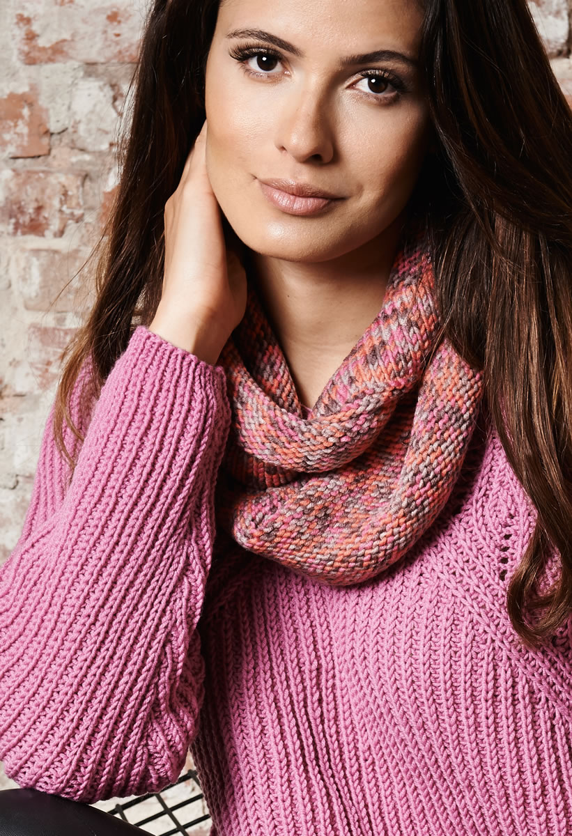 Пуловер настроения в оттенках морозной малины. Спортивно или элегантно? А как Вам больше нравится? Декоративные убавления реглана, патентный узор и свободный крой открывают пространство вариаций стиля.