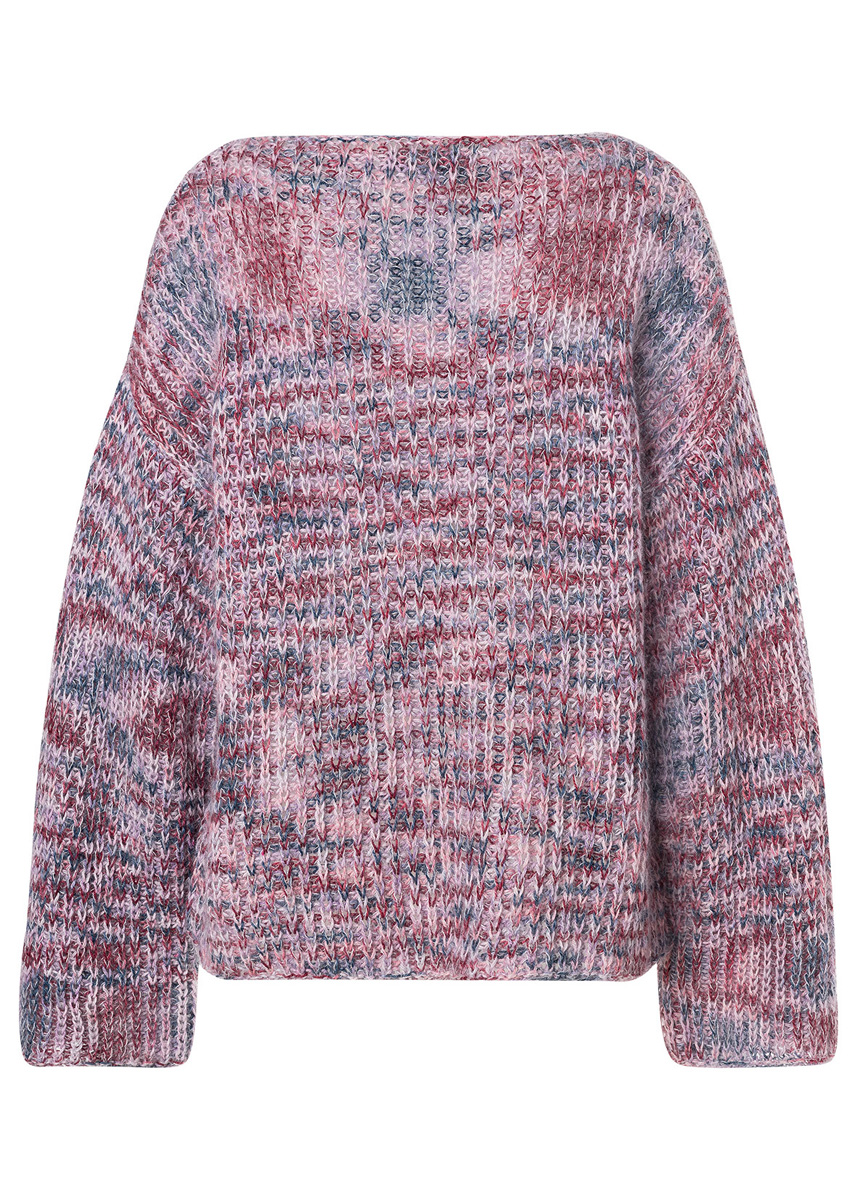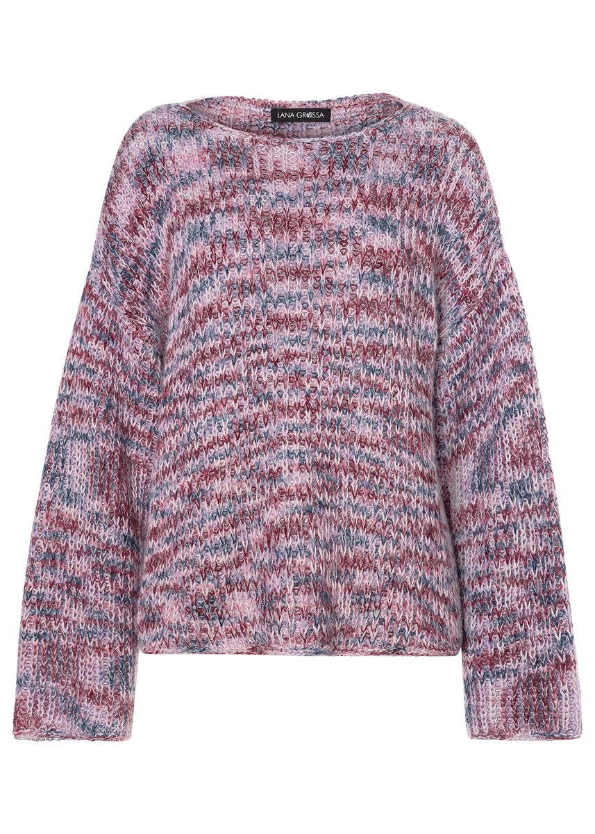 Lana Grossa Setacotone hand-dyed (50% шёлк, 50% хлопок, длина нити 340 m/100 g), 400 (500 – 500) г Dal (цв 907) и Lana Grossa Silkhair (70% мохер, 30% шёлк, длина нити 210 m/25 g), 150 (175 – 175) г серо фиолетовый (цв 152); сп. № 5,5 и 6.