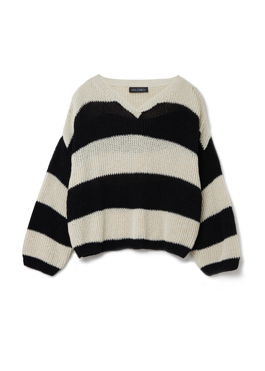 300 (350–400) г кремовой (цв. 15) и 250 (300–350) г черной (цв. 16) пряжи Setapura (100% шелка, 200 м/50 г) фирмы Lana Grossa; прямые спицы № 3 и круговые спицы № 3 длиной 60 см.