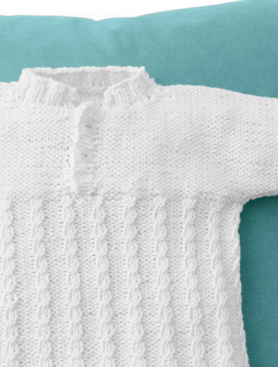 Lana Grossa Soft Cotton (70 % хлопок, 30 % полиамид, длина нити 140 m/50 g) 100 г белый (цв 10); спицы № 3,5, кр. спицы № 3,5, длиной 40 см; 1 кнопки 10 мм Ø