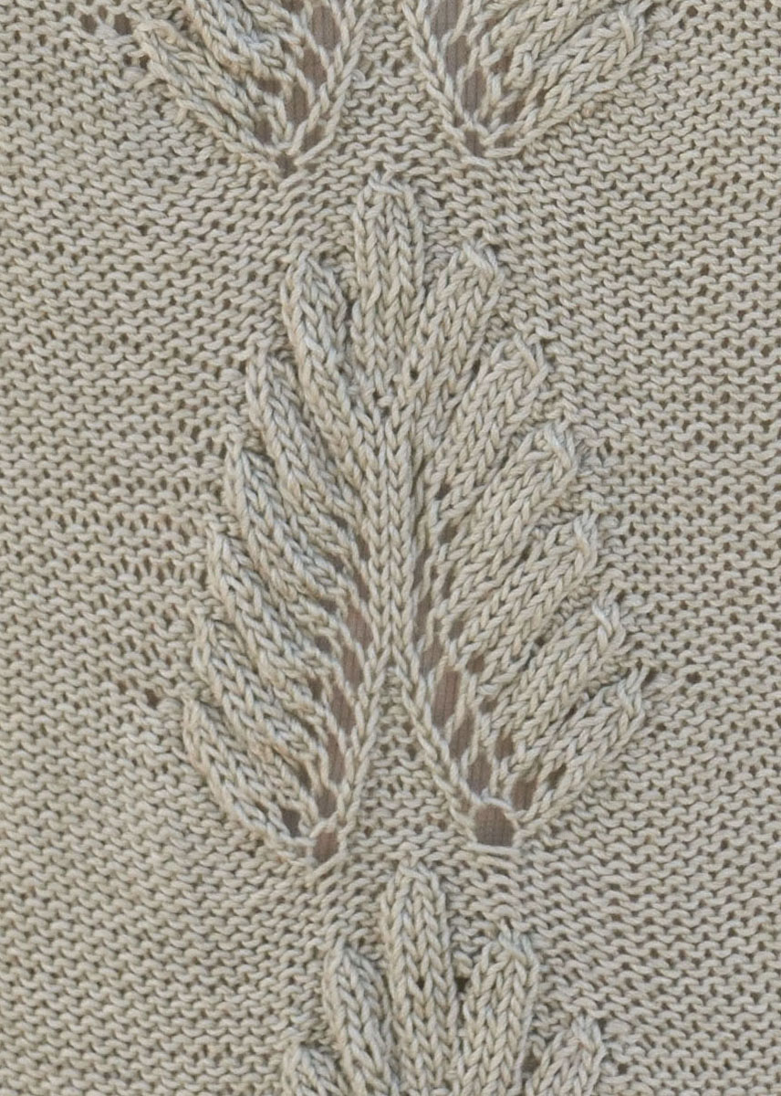 500 (550 – 600) г светло-серой (цвет 5) пряжи Solo Lino фирмы Lana Grossa (80 % переработанного льна (вискозы), 20 % льна, 120 м/50 г); прямые спицы № 3 и 4, круговые спицы № 4 длиной 80 см