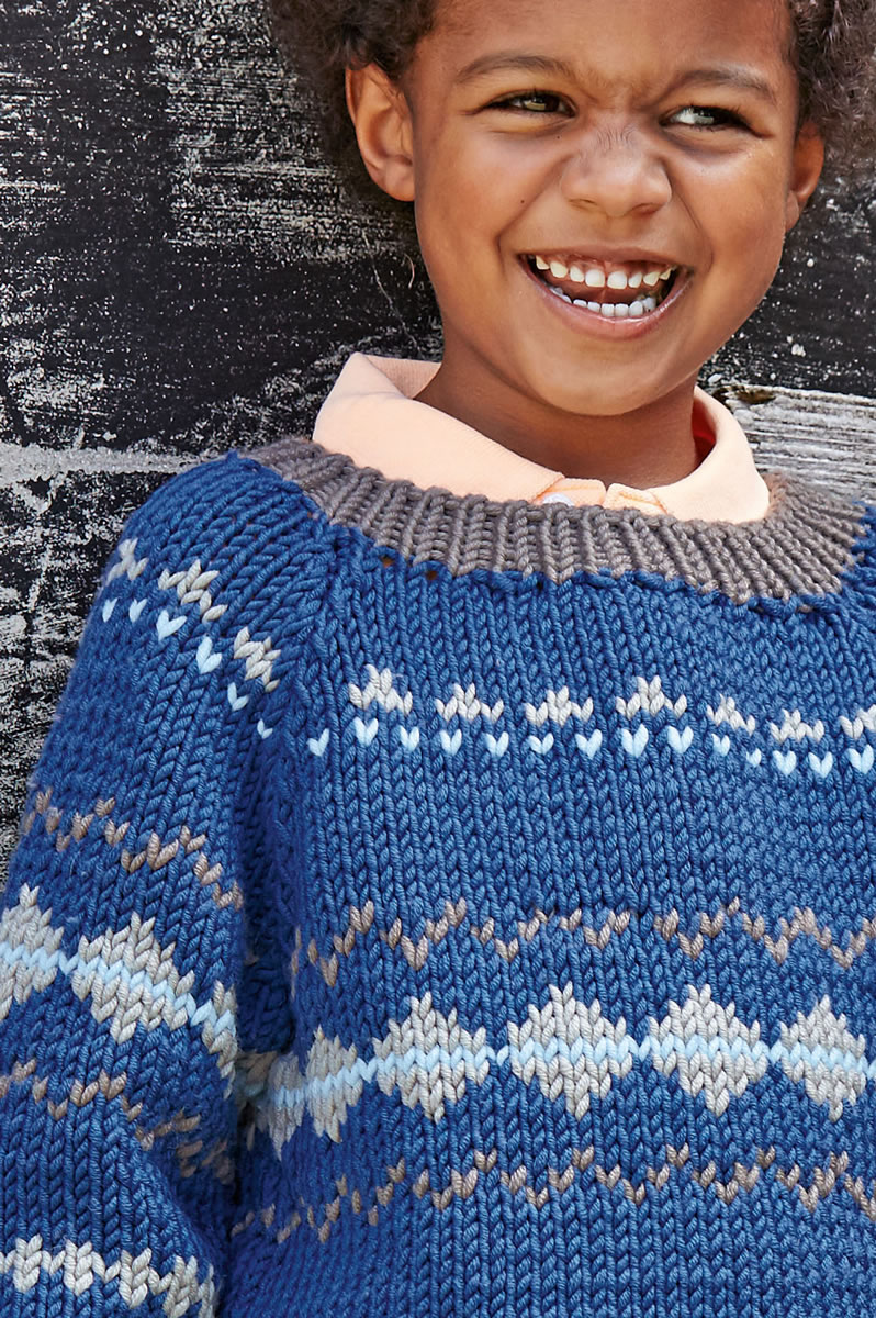 Голубой пуловер: 250 (300) г бензиново-голубой (цвет 7), 150 (200) г серо-коричневой (цвет 4), 100 (150) г жемчужно-серой (цвет 53) и 50 г светло-голубой (цвет 59) пряжи Superbingo фирмы Lana Grossa (100 % шерсти, 55 м/50 г);