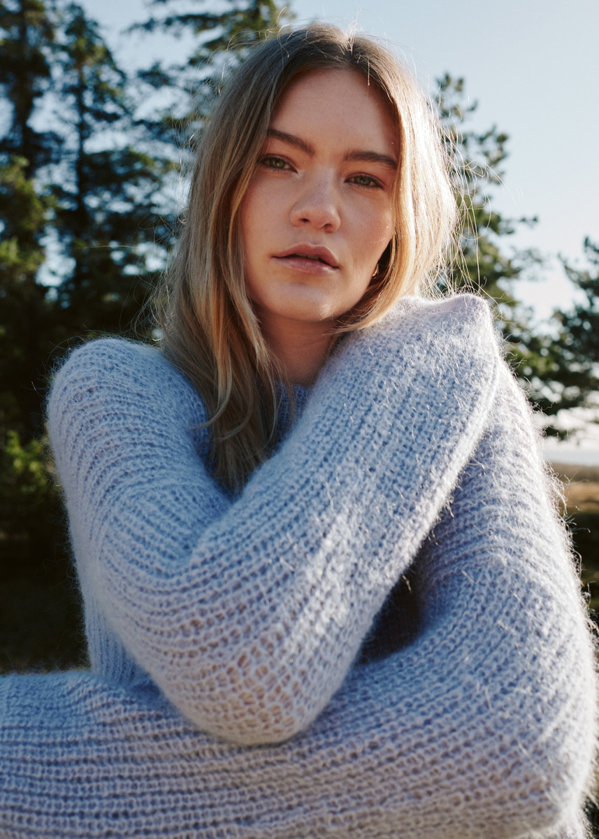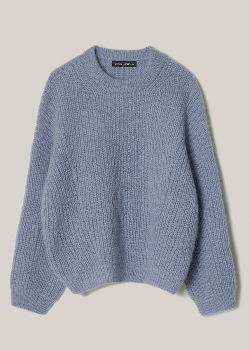 325 (350) г васильково-синей (цв. 27) пряжи Setasuri (69% альпака сури, 31% шелка, 212 м/25 г) фирмы Lana Grossa; круговые спицы № 2,5 дли- ной 40 и 80 см, круговые спицы № 3,5 длиной 40 и 100 см, круговые спицы № 2,5 длиной 25 см