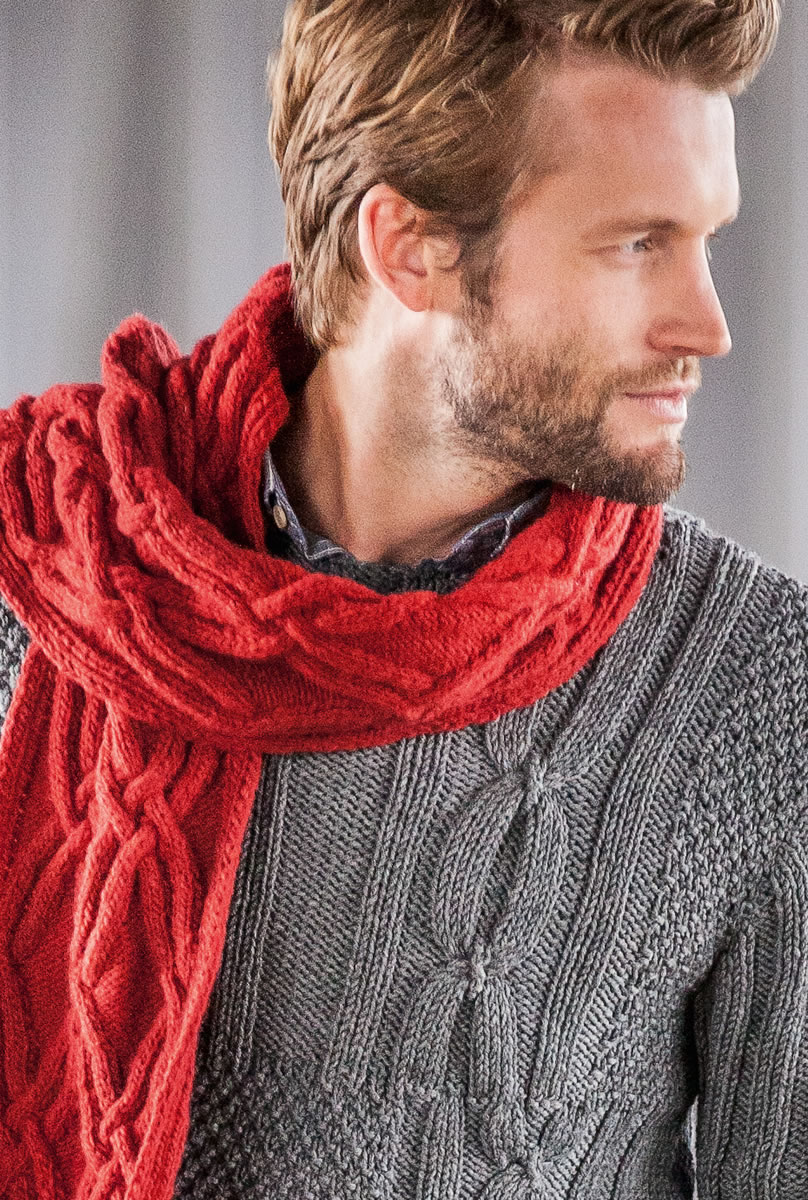 Очень длинный, яркий контрастный шарф крайне актуален в этом сезоне. Он превосходно дополняет свитер в холодной серой гамме.