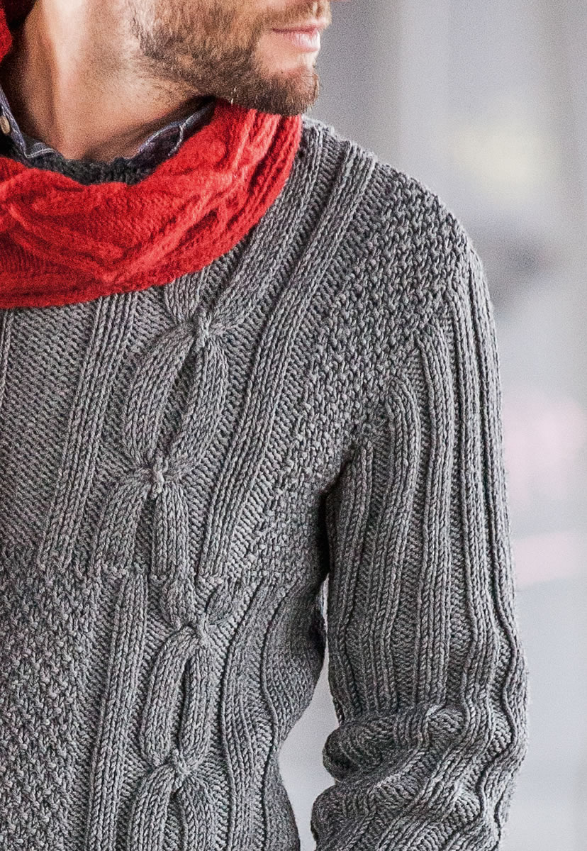 800 (850) г темно-серой меланжевой (цвет 120) пряжи Bingo фирмы Lana Grossa (100 % шерсти мерино, 80 м/25 г); прямые спицы № 4,5 и 5, круговые спицы № 4,5.