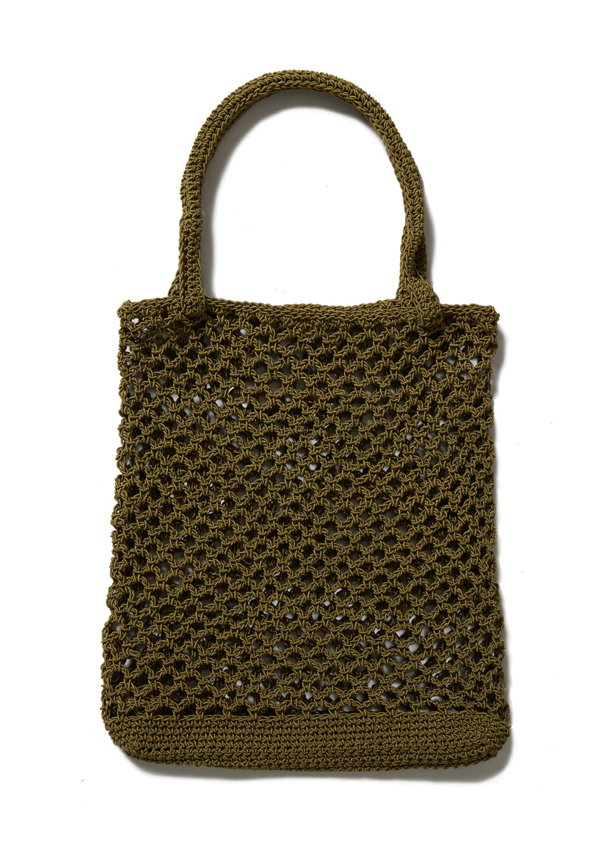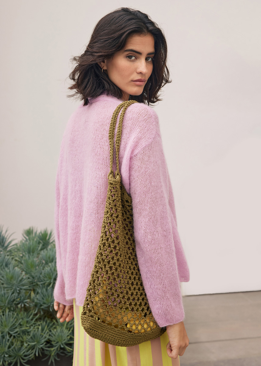 300 г оливковой (цв. 7) пряжи The Core (50% хлопка, 50% полиэсте- ра, 85 м/100 г) фирмы Lana Grossa; крючок № 4,5.